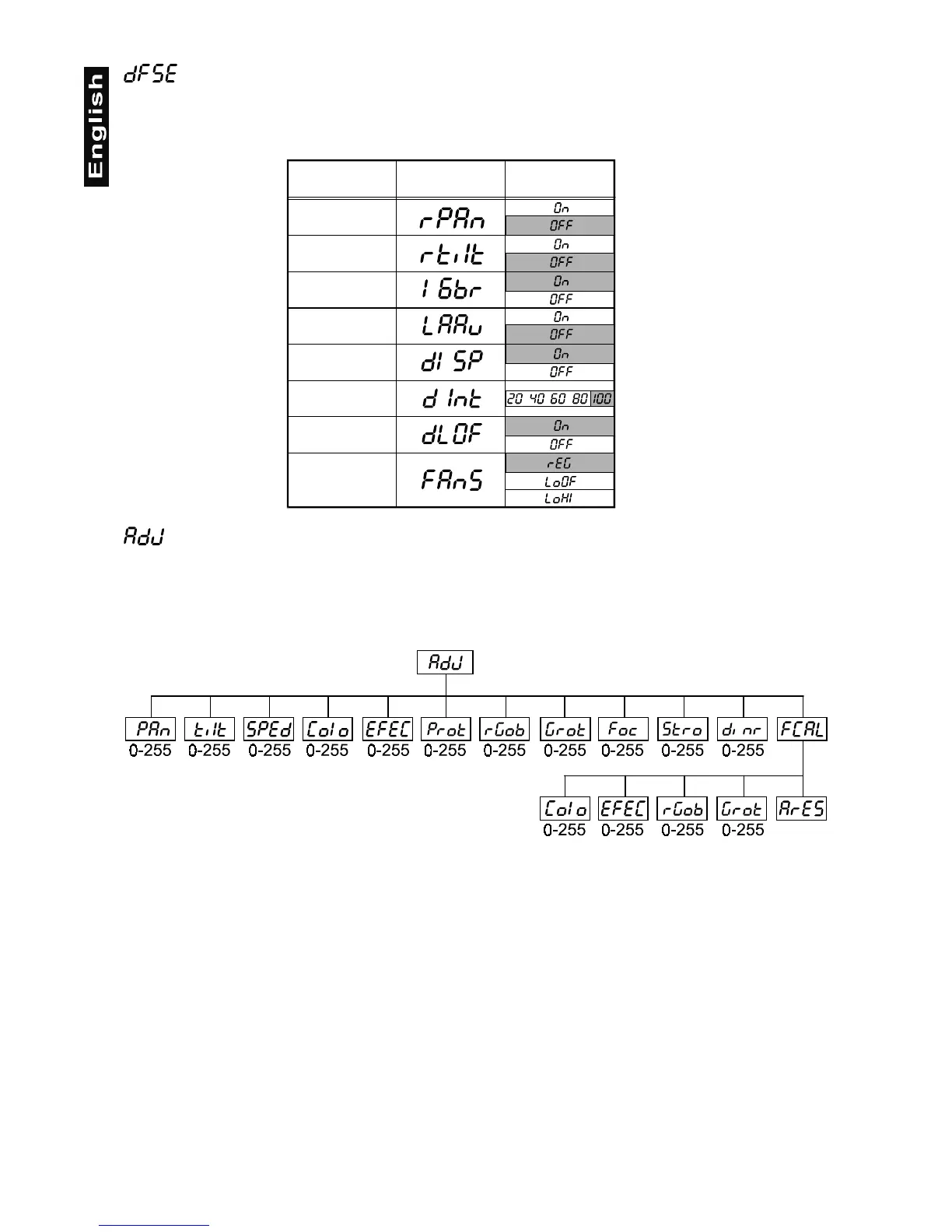 and effect wheels. When the reset of the fixture is finished, the display will show the
