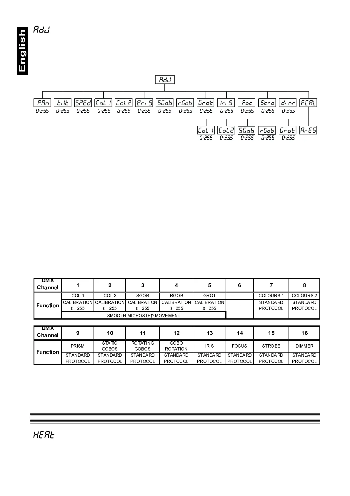 gobo and effect wheels. When the reset of the fixture is finished, the display will show the