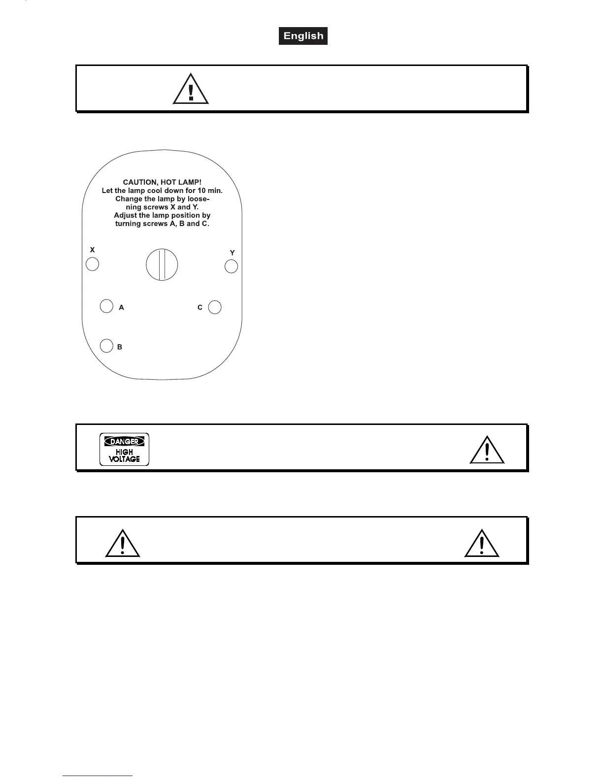 the lamp out by turning the screws "A, B, C” counterclockwise