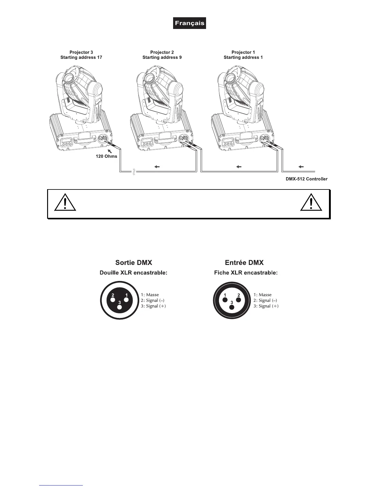 Connexions au contrôleur DMX-512 / raccord projecteur - projecteur