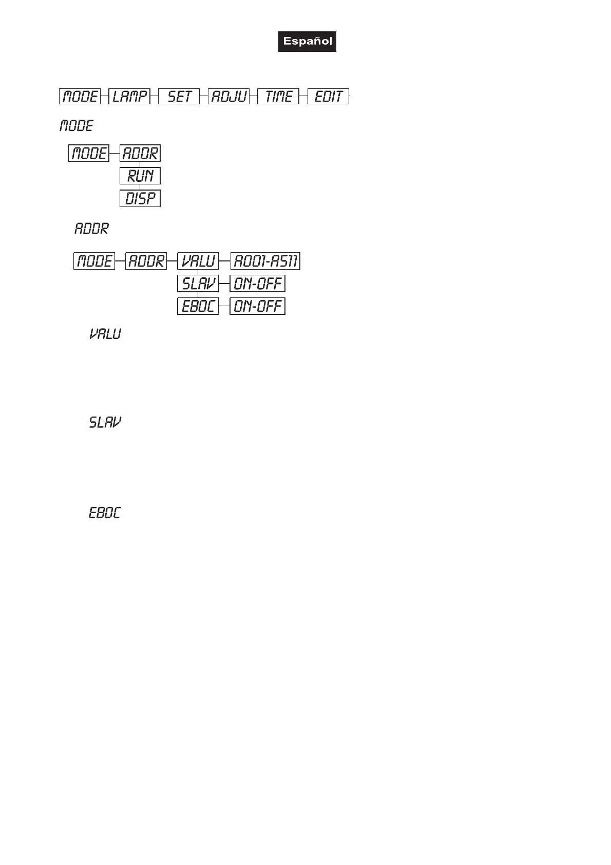 • Pulse la tecla Mode/Enter y la tecla Up o Down para seleccionar "ADDR",