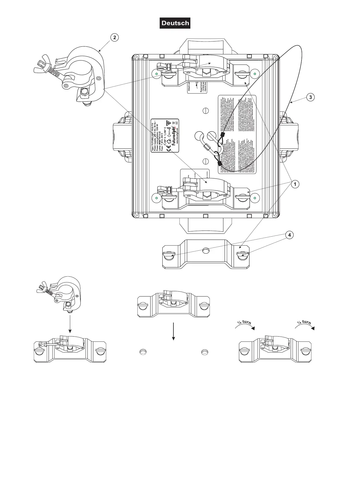an der Geräteunterseite ein. Drehen Sie die Schnellverschlüsse im Uhrzeigersinn bis zum Anschlag fest.