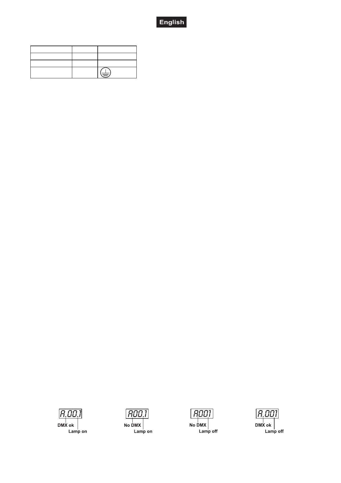 The modes of DMX 512 data and lamp are shown via the display: