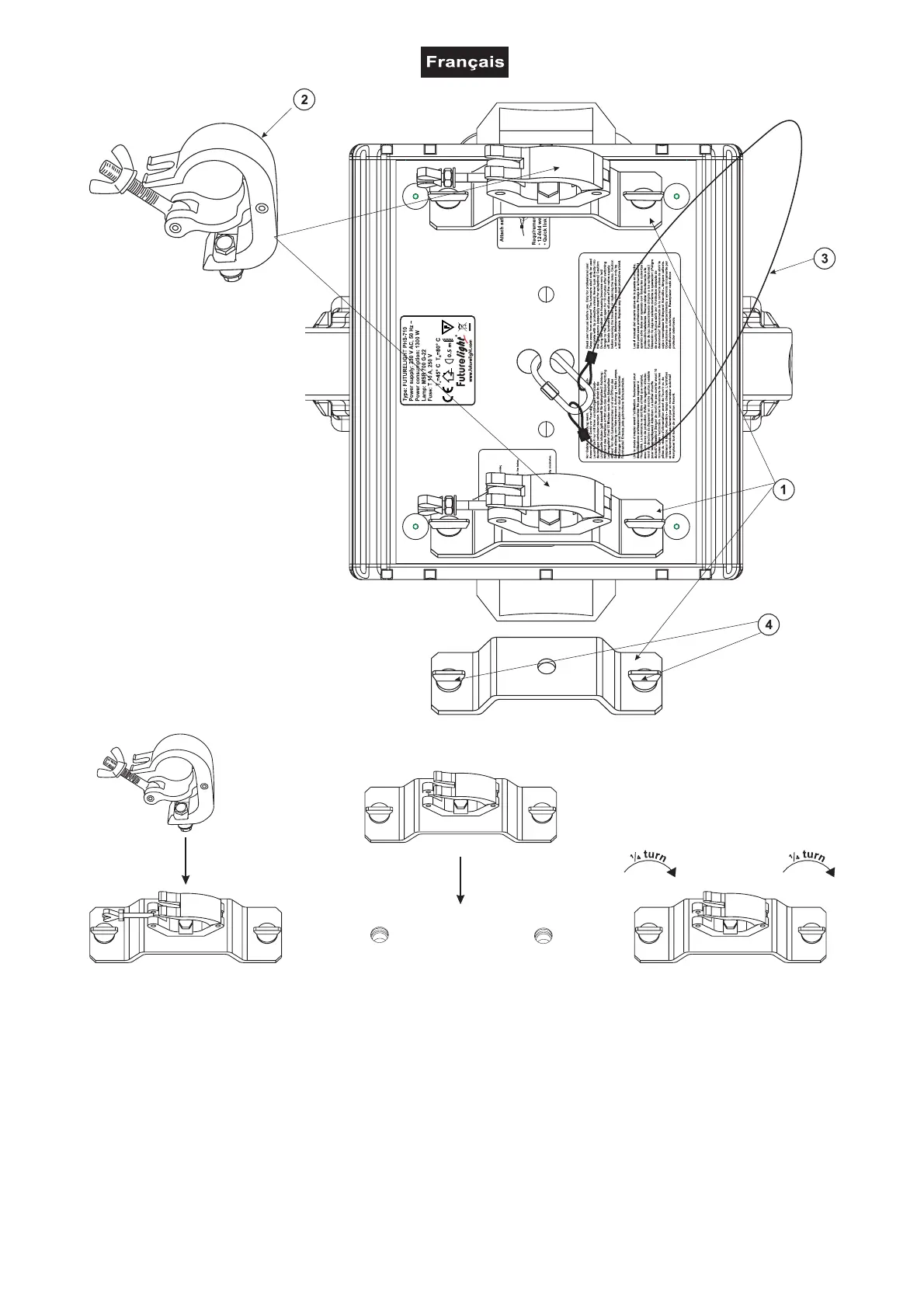 Insérez les deux cerrages Quick-Lock de la première fixation dans les trous dans la base. Fixez les cerrage