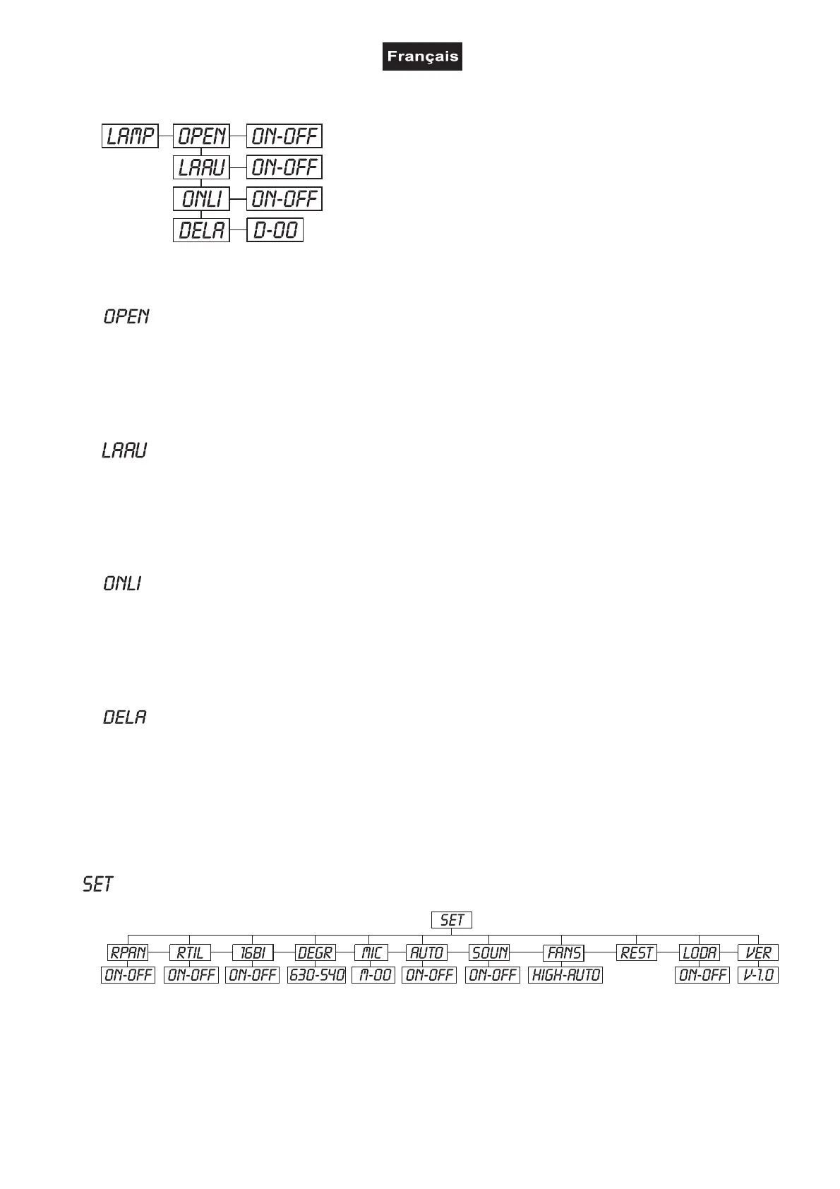 • Pressez la touche Up pour choississer “ON” pour allumer la lampe, ou “OFF” pour l'éteindre.