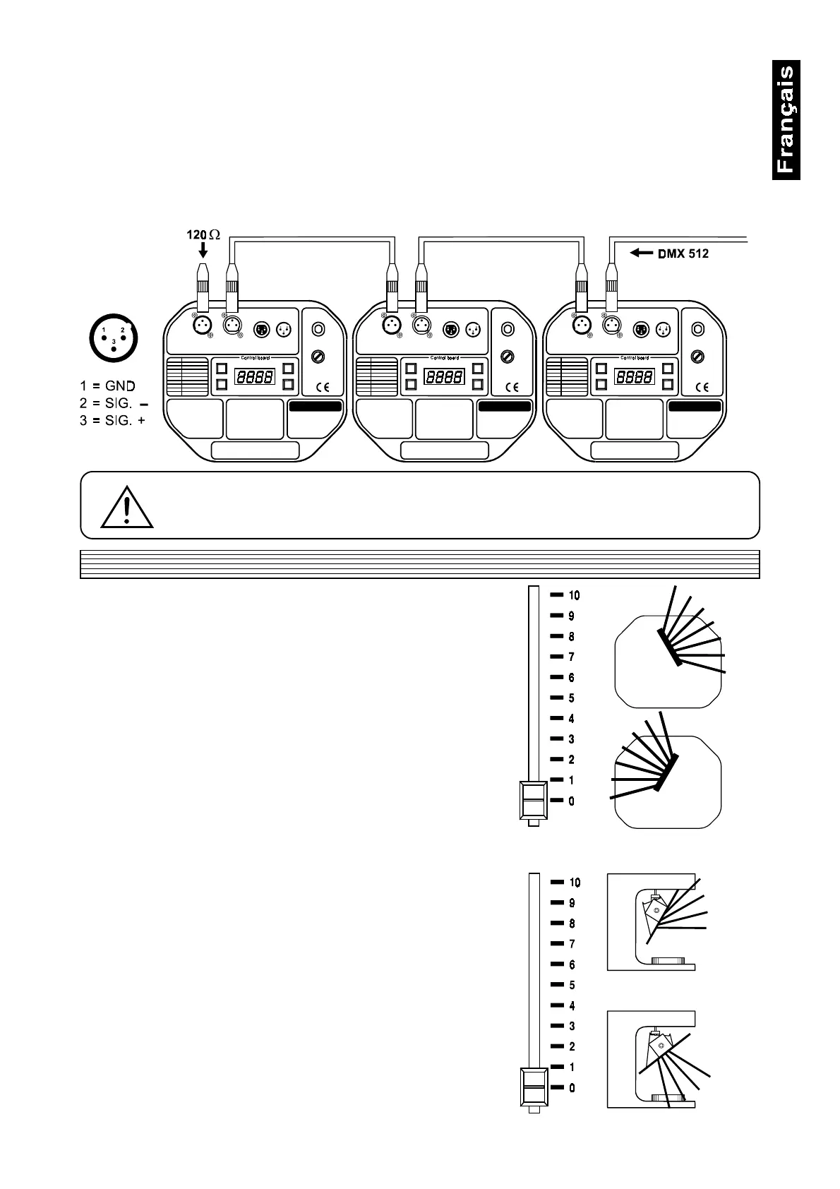 Attention: Au scanner ulterieur, le câble DMX doit être obturé par une résistance de 120 W . Braser la résistance