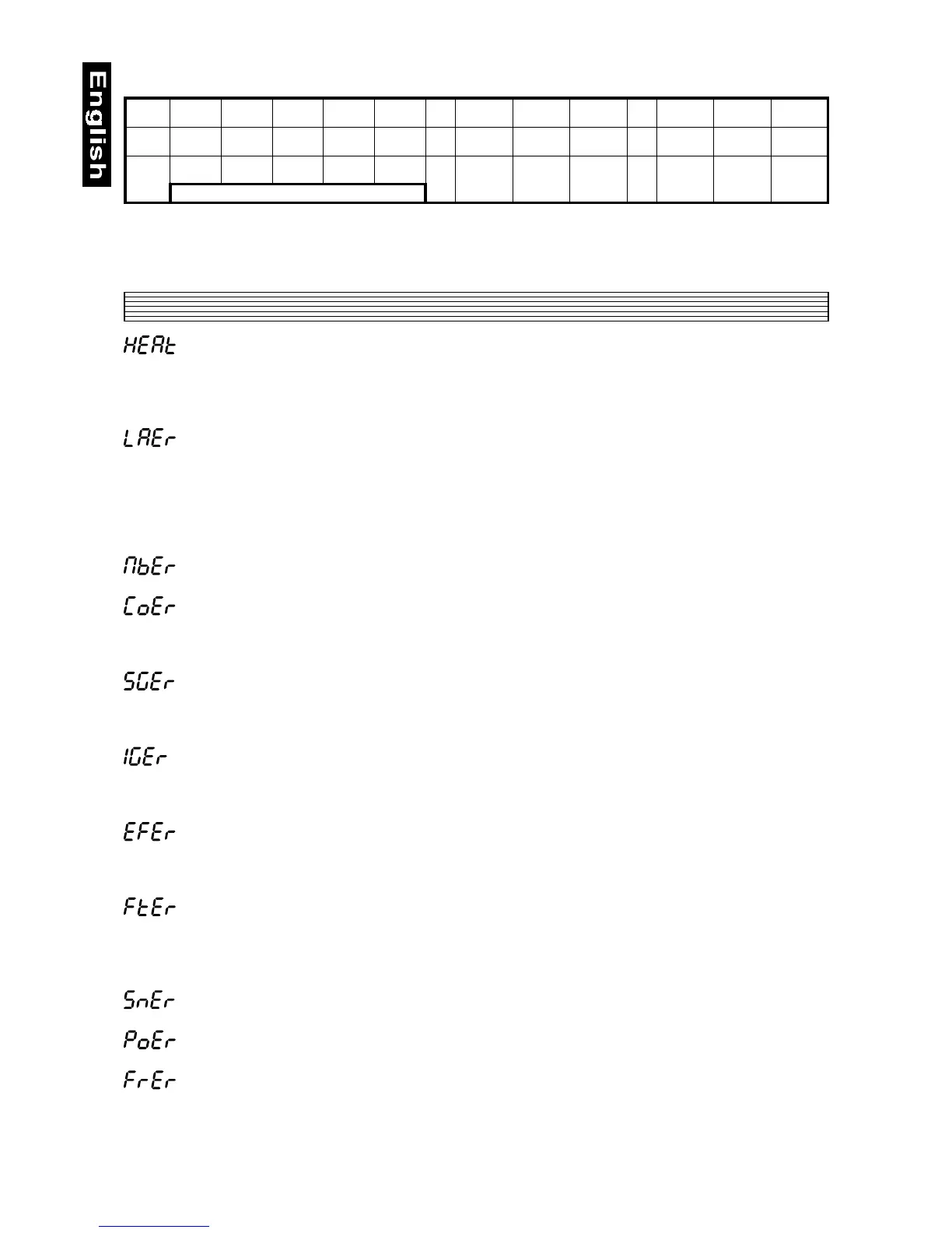 display will appear "LAEr", meaning that the lamp could be damaged or even missed, the fixture is overheating
