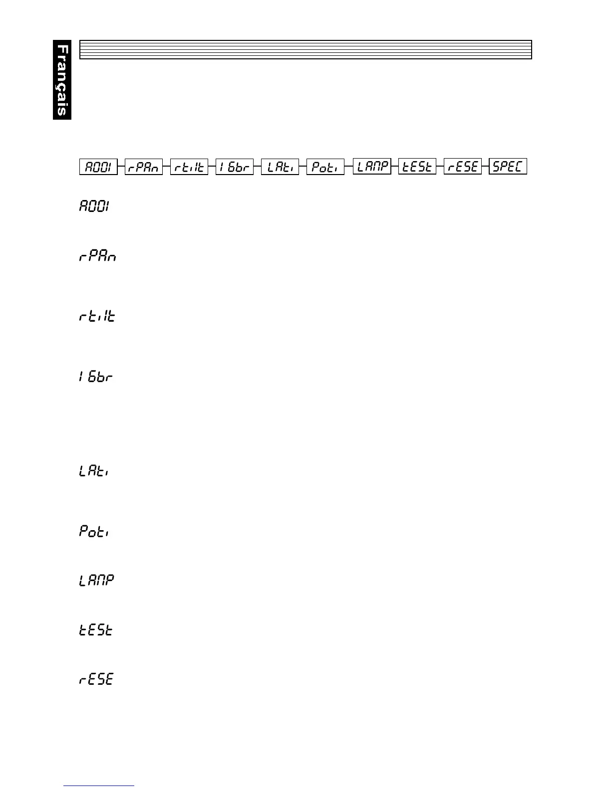 16br, Lati, Poti, LAMP, tESt, rESE, SPEC". Pressez la touche Enter pour confirmer la séléction ou la touche