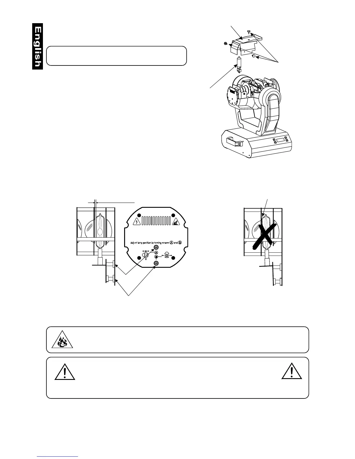 intensity by moving the lamp closer to the reflector. Do so by