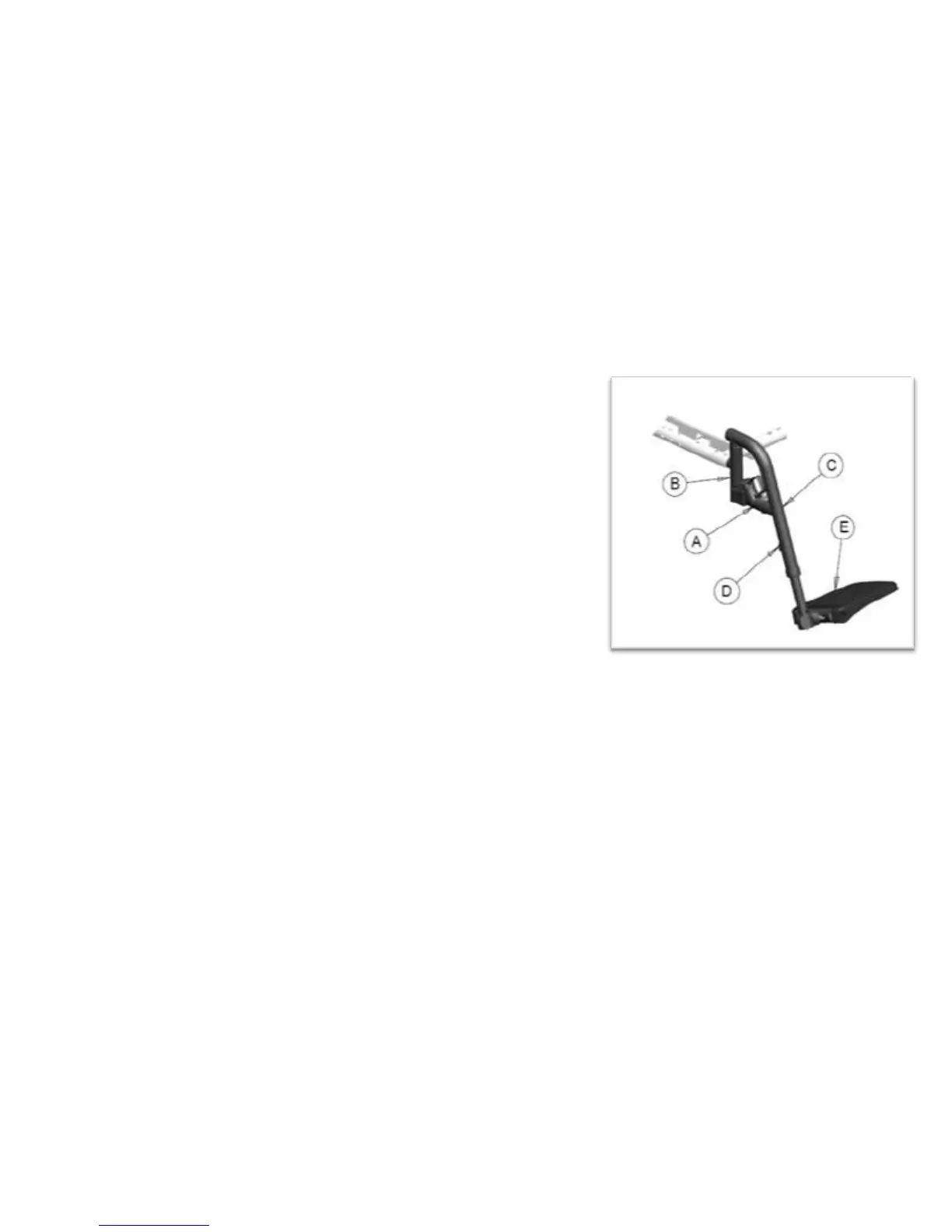 a. To remove the footrest, pull up onto the handle latch (A) releasing the