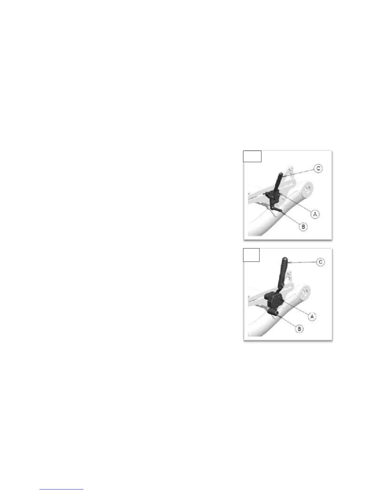 d. To engage wheel lock, push handle (C) forward for the Push to Lock or pull