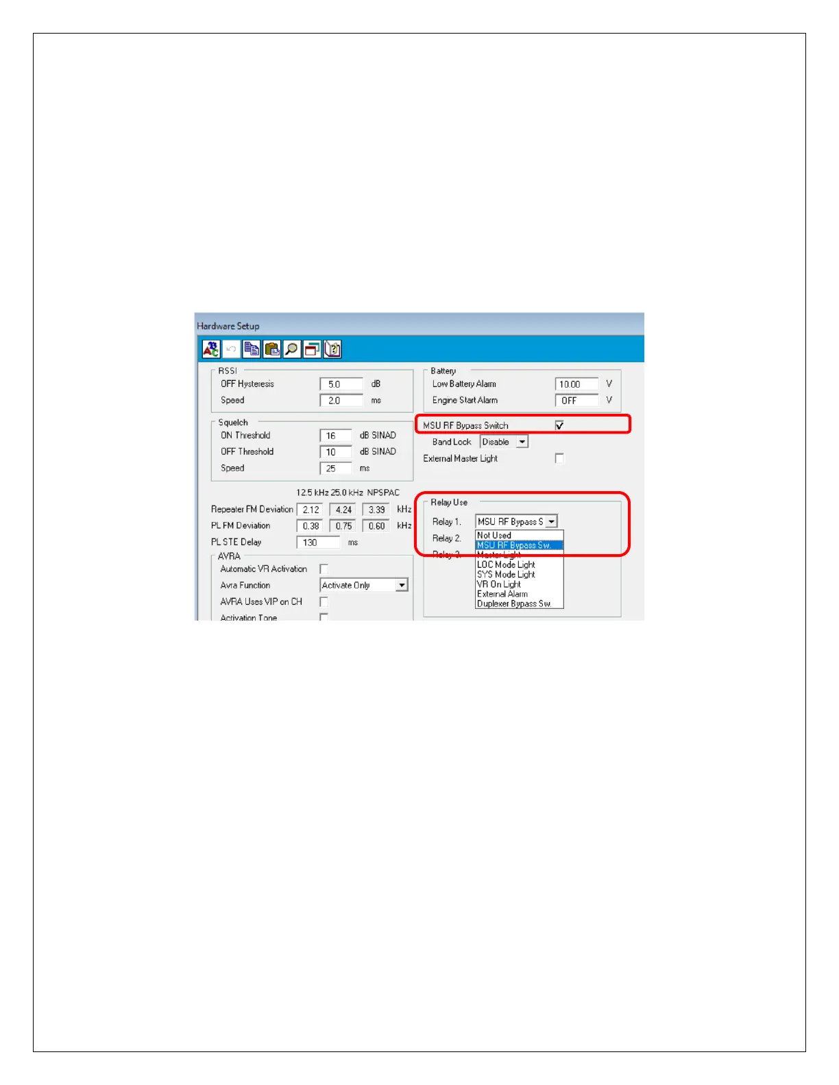 • Relay Use- Relay 1 = MSU RF Bypass Sw.