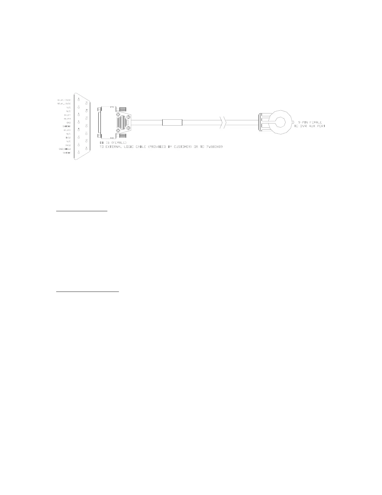 To connect other external logic to the DVR, the DB15 connector of the RF Switch cable
