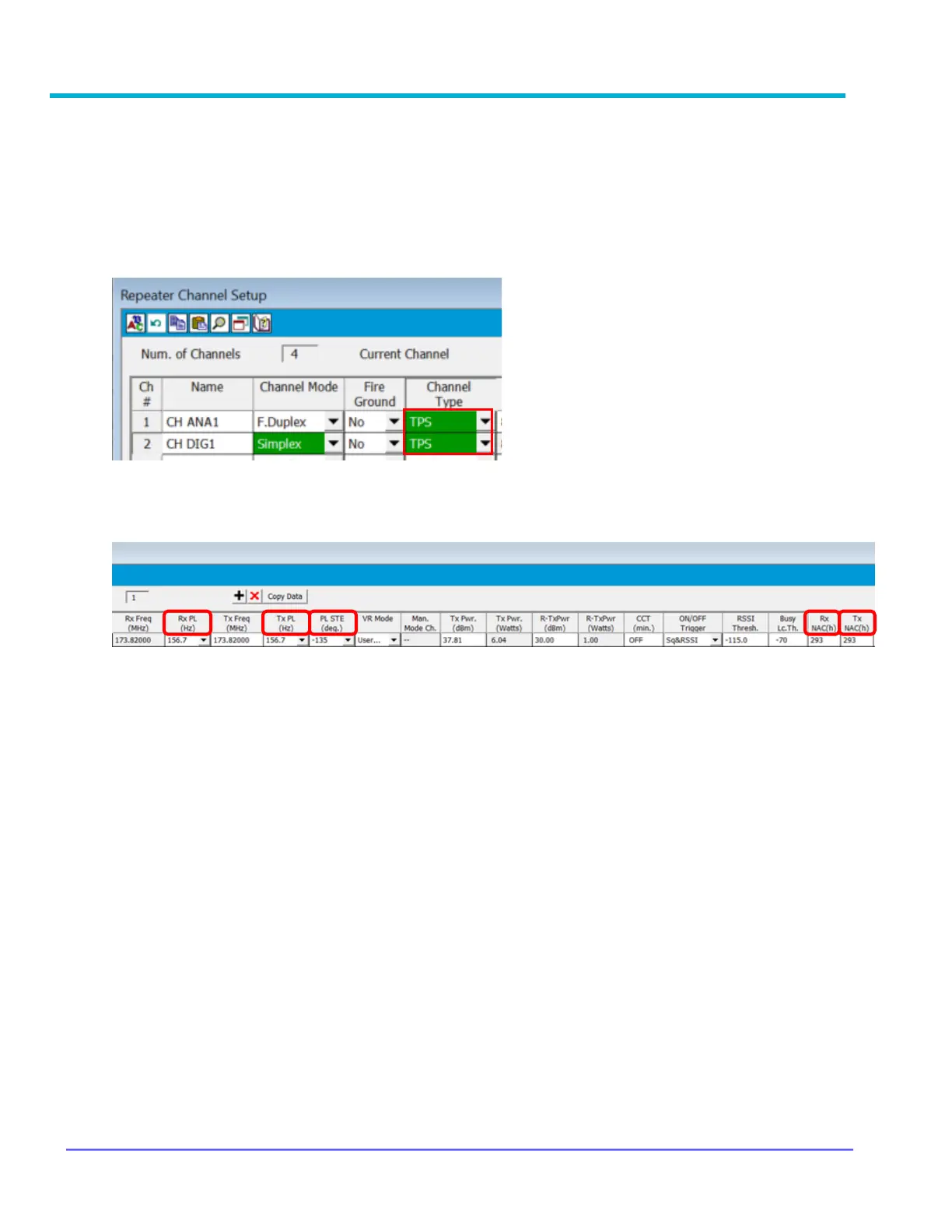 Step 3: Set PL and NAC values to match with PSU programming: Rx PL(Hz), Tx PL(Hz), PL