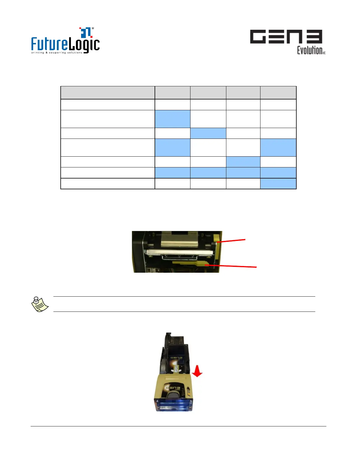 The GEN3 Evolution printer includes two Release Levers, accessible by opening the Printer Lid: