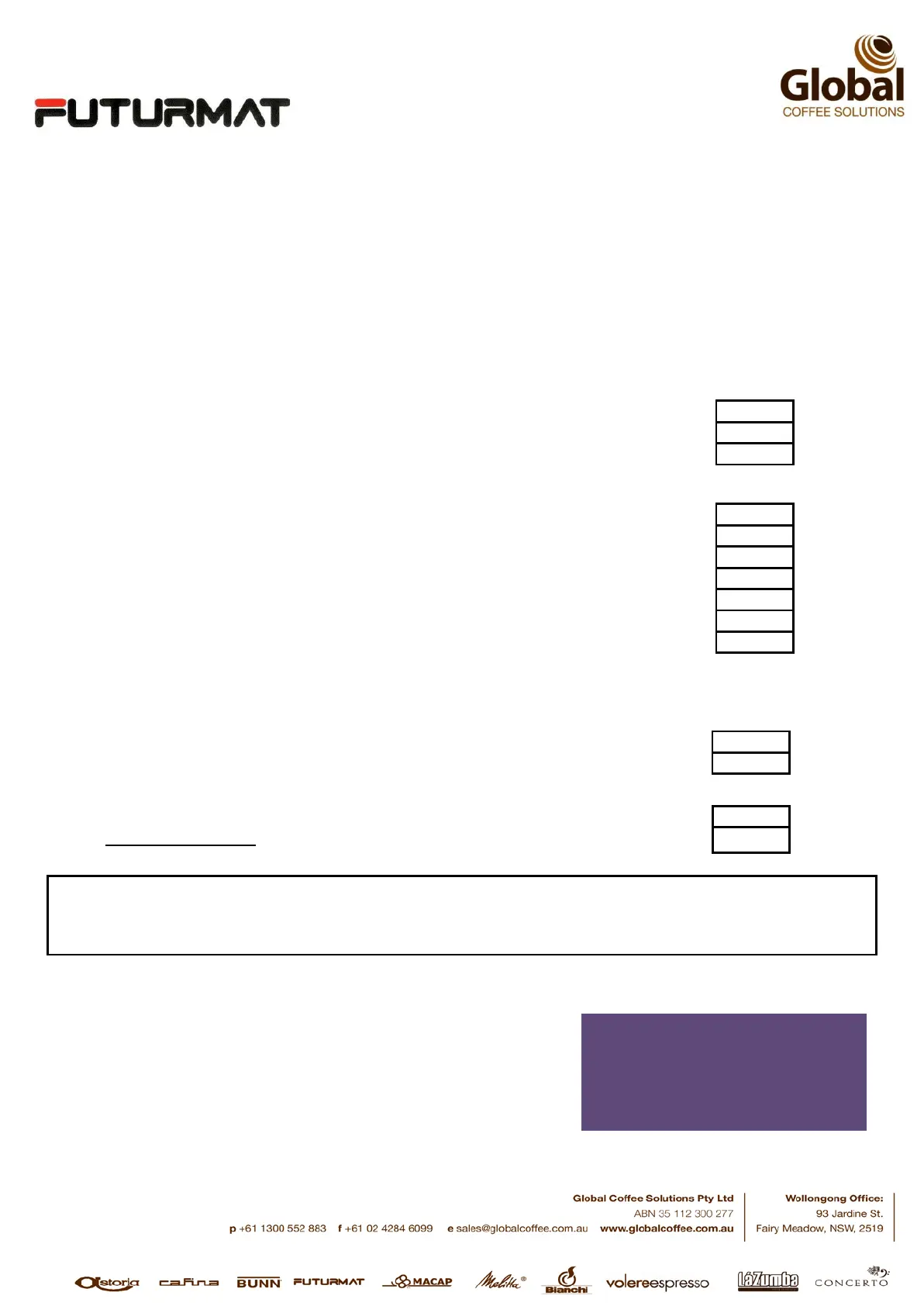 GLOBAL COFFEE SOLUTIONS- email sales@globalcoffee.com.au or 02 4284 6099
