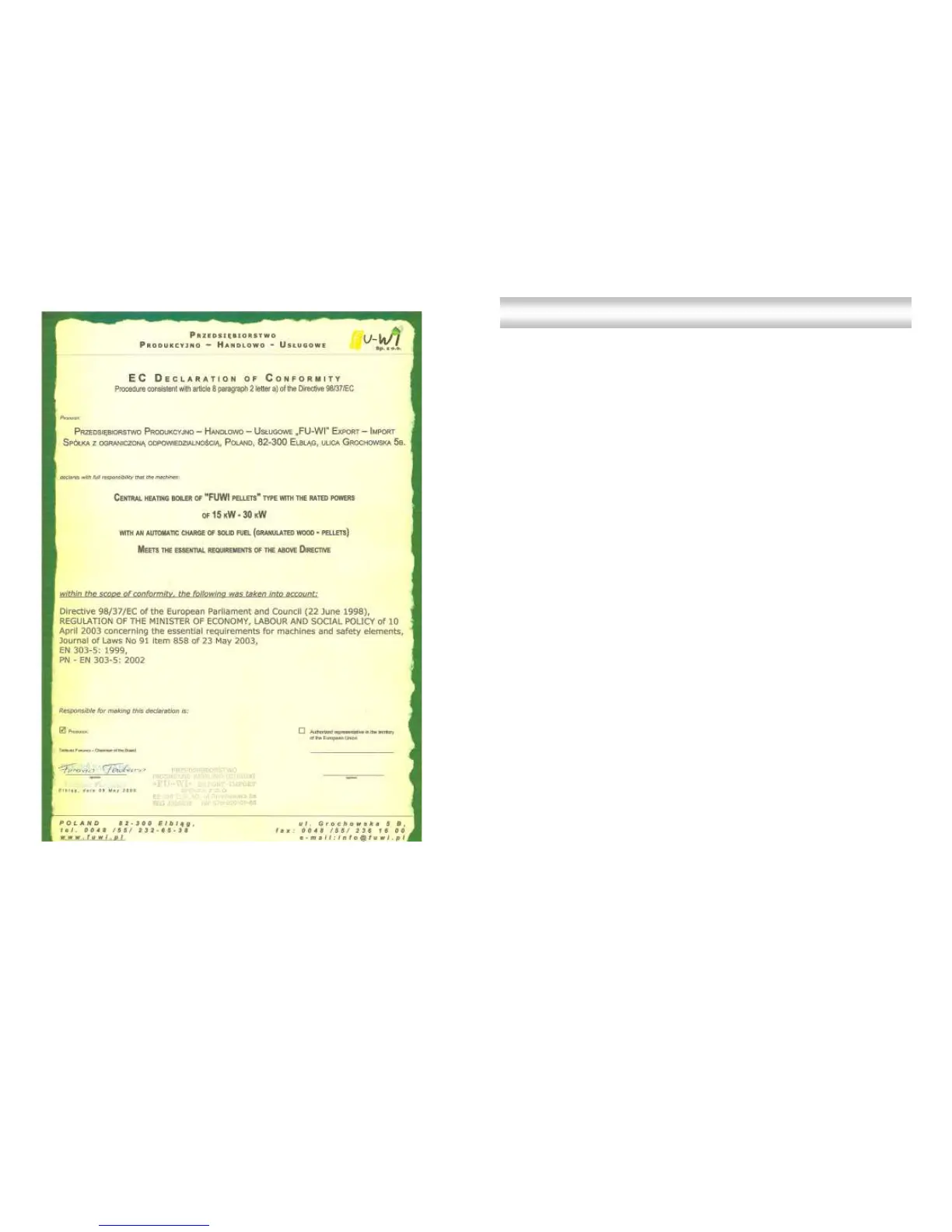 FUWI Pellets Boilers - EC Declaration of Conformity; Notes