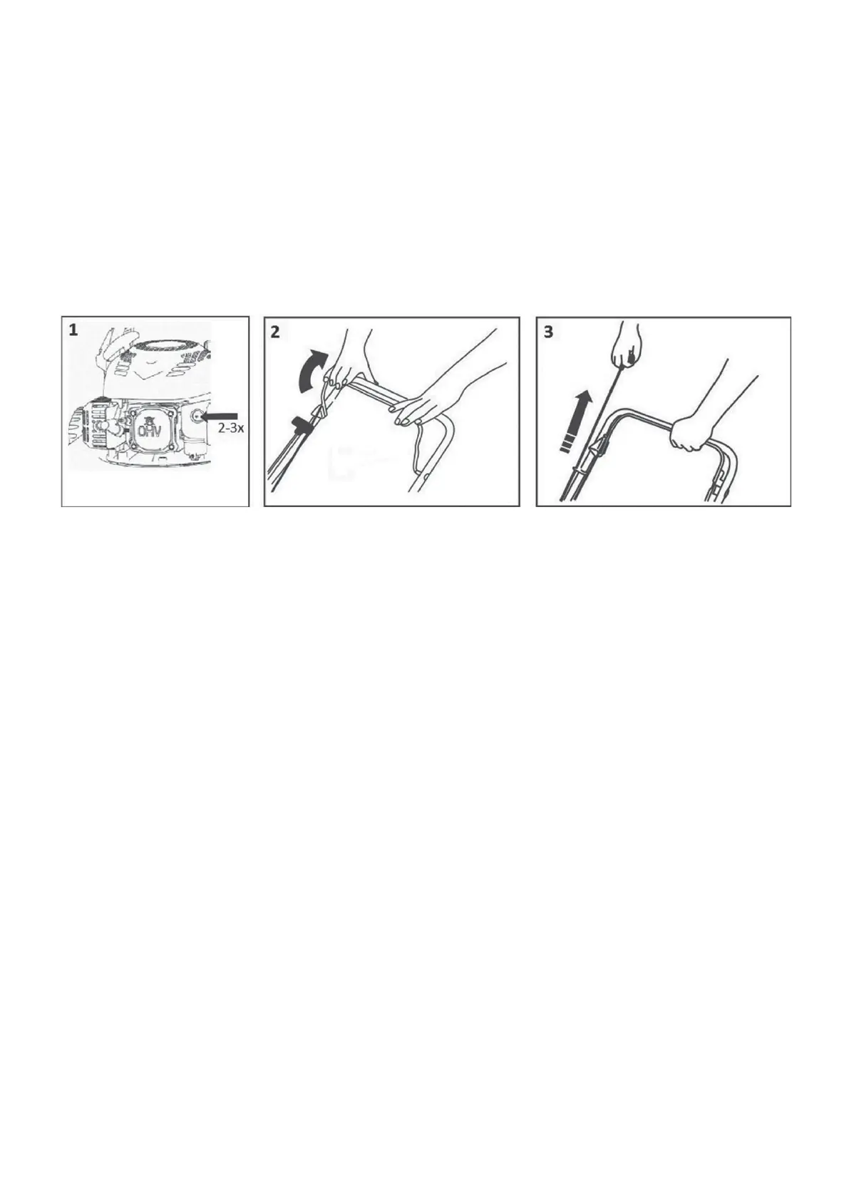 Zugschnur. Der Motor sollte nach 3-4 Zügen anspringen.