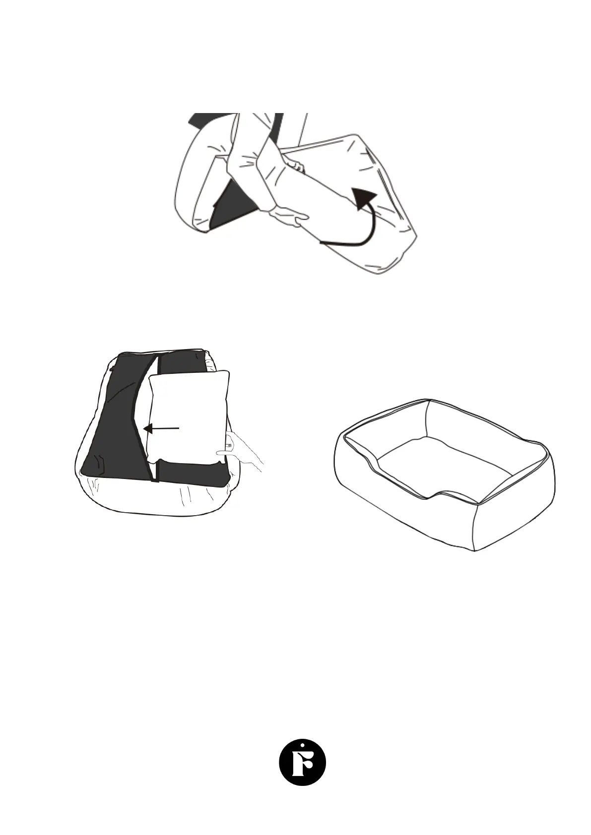 4. Turn the bed upside down and insert the base pillow into the bed, zip closed.