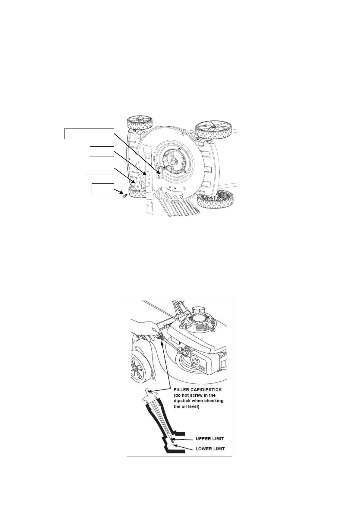 Check the engine oil level with the engine stopped and the mower.