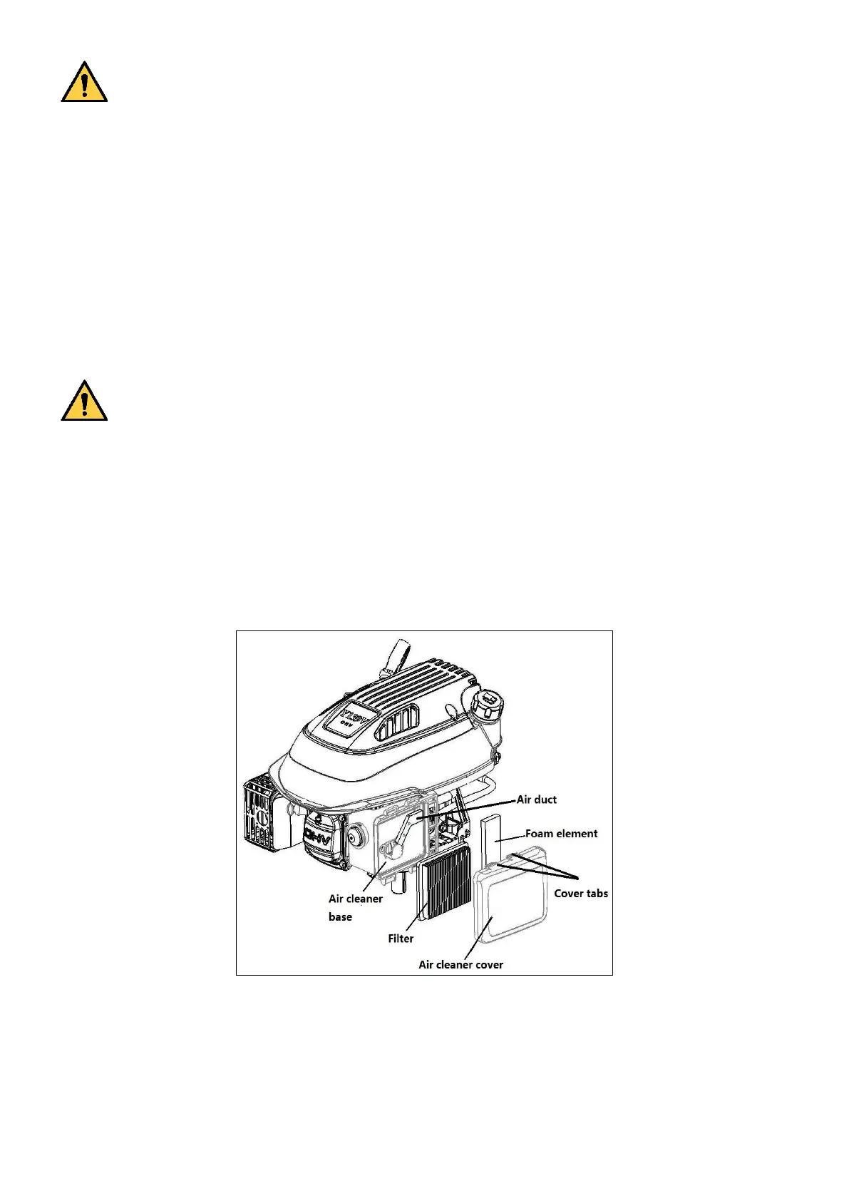 NOTICE: Operating the engine without an air cleaner, or with a damaged air cleaner, will allow