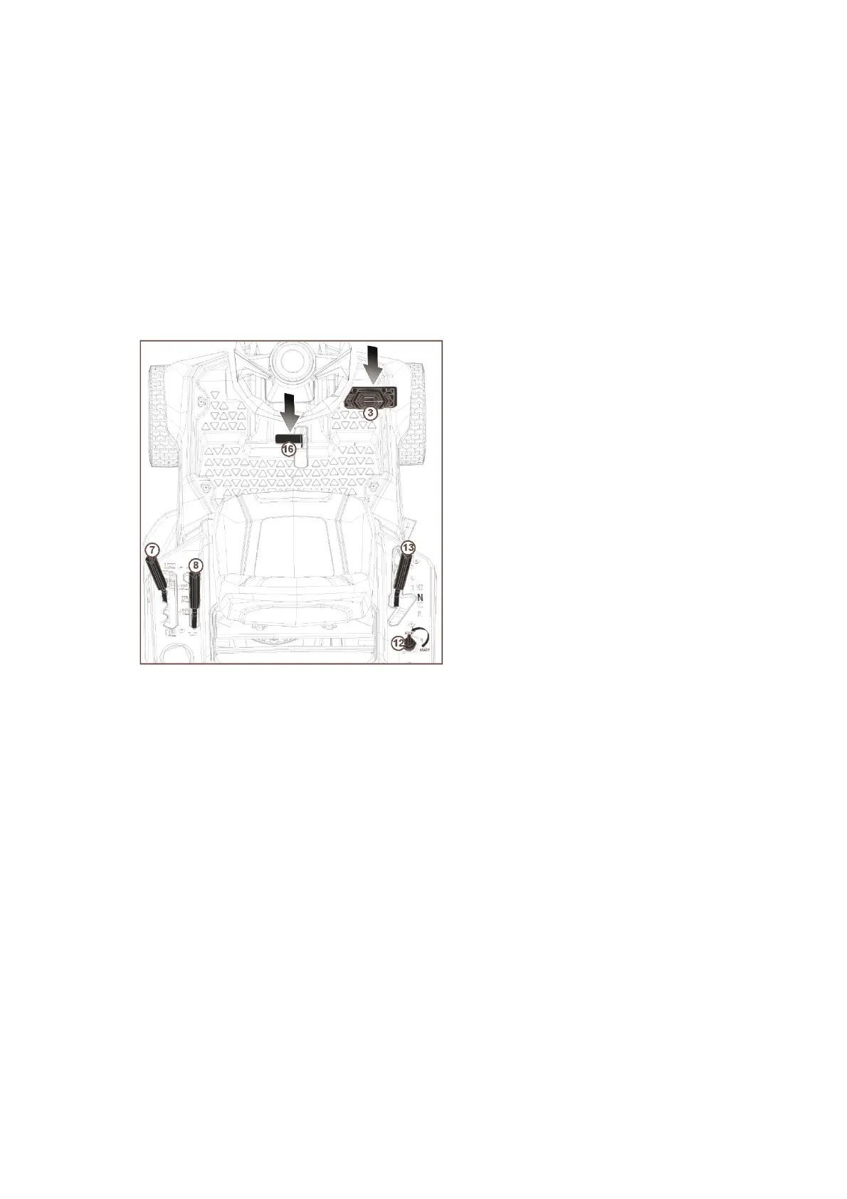 • Always remove the ignition key (12) when leaving the lawnmower.
