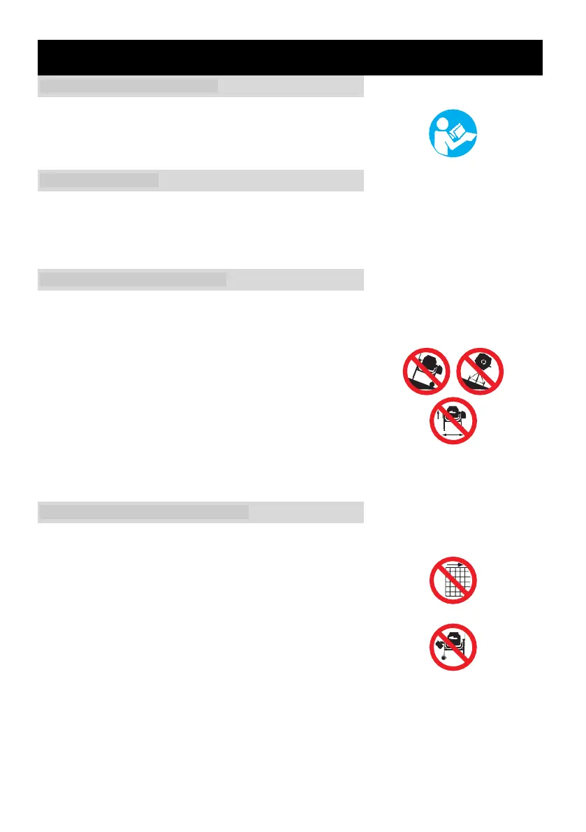 Ikke prøv å flytte mikseren når den er lastet og / eller i drift.