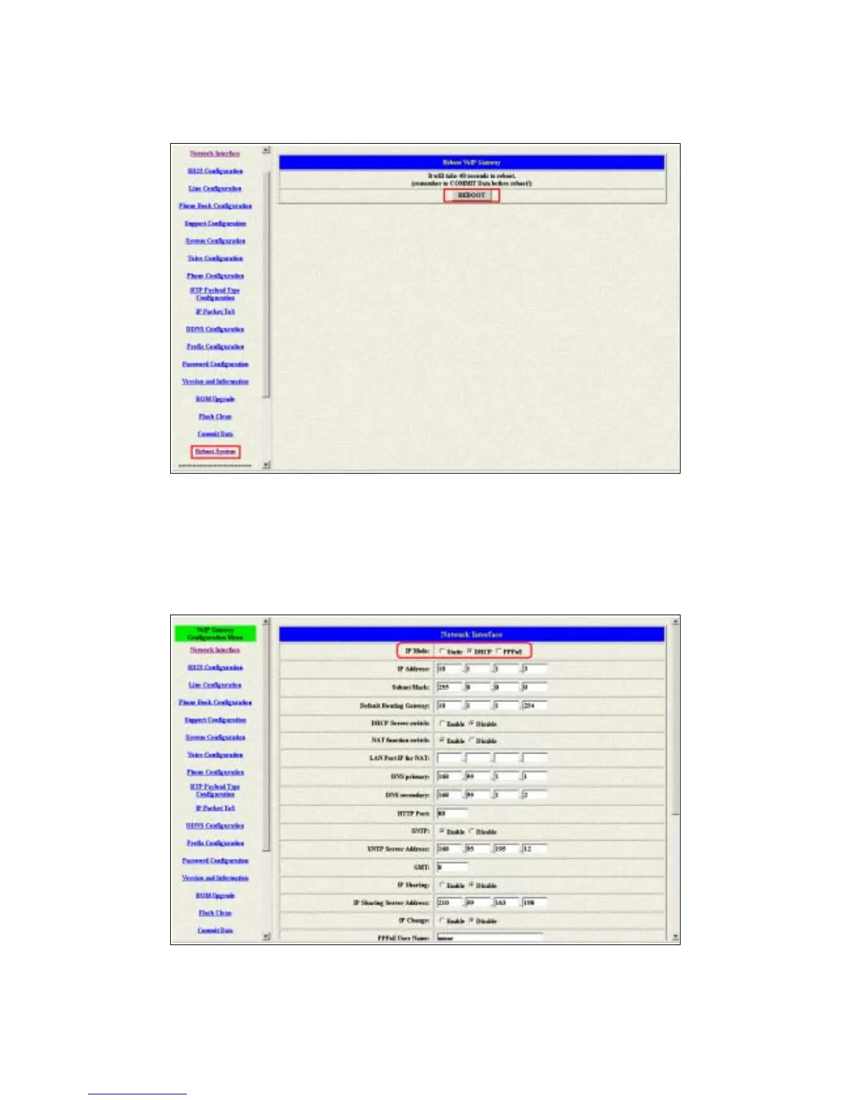 3 Press the reboot if you want the configuration executed.