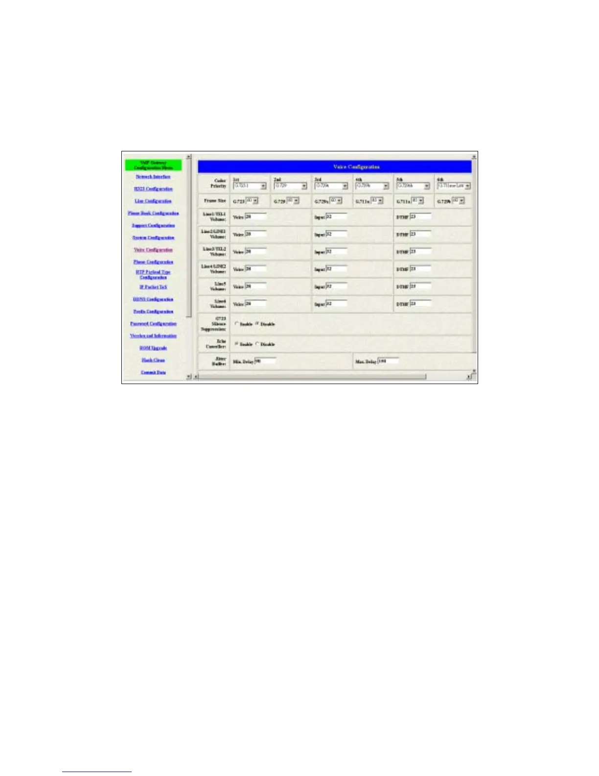 Line1 (TEL 1) Volume – To configure the output gain (voice), input gain