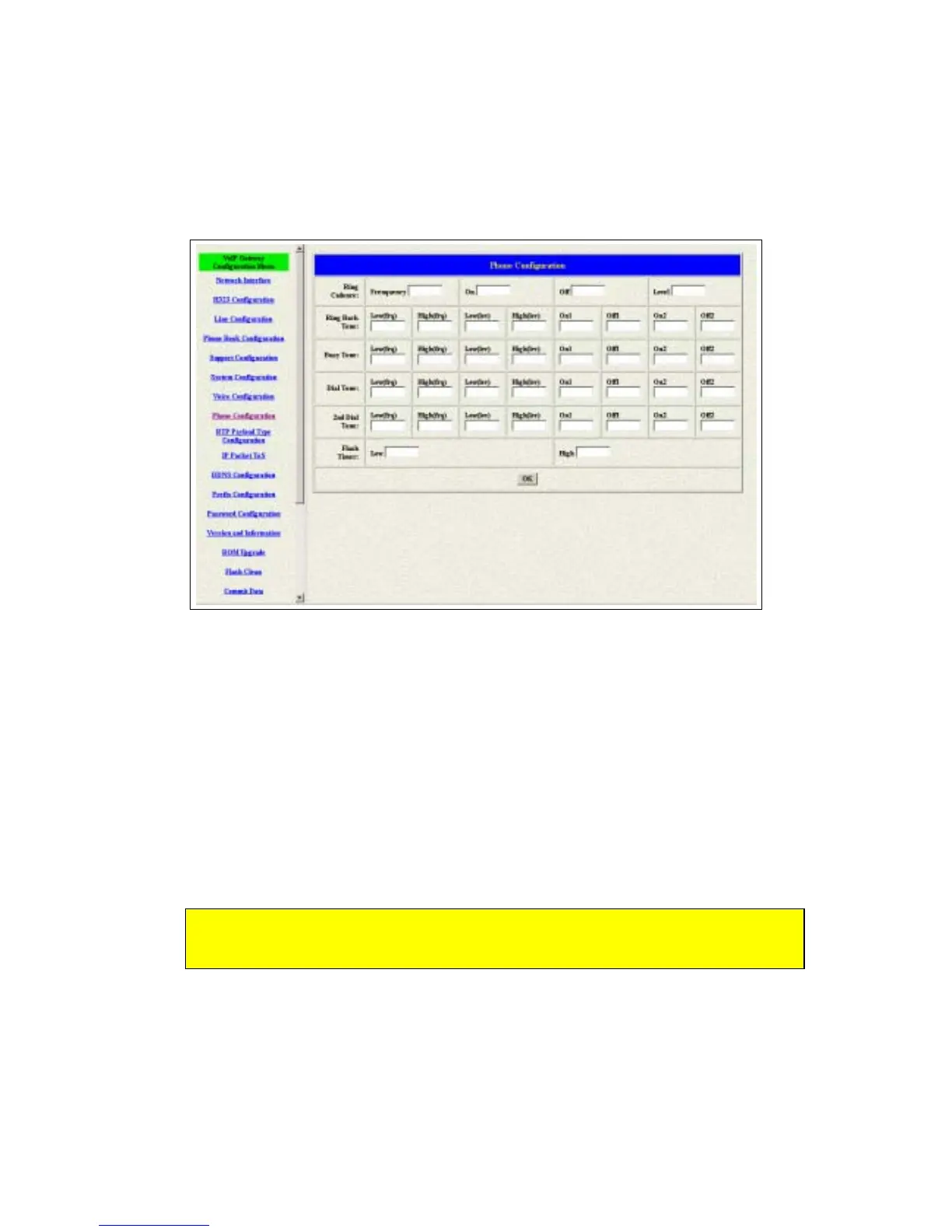 Ring Cadence – TO configure the frequency and cadence for the local ring