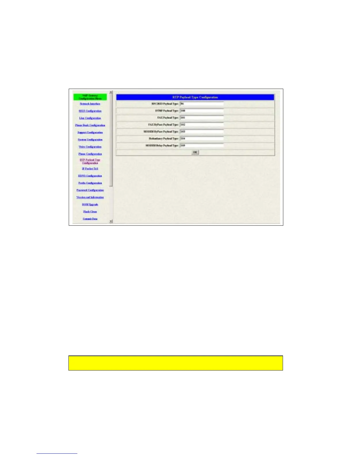 3.10 RTP Pay Load Type Configuration