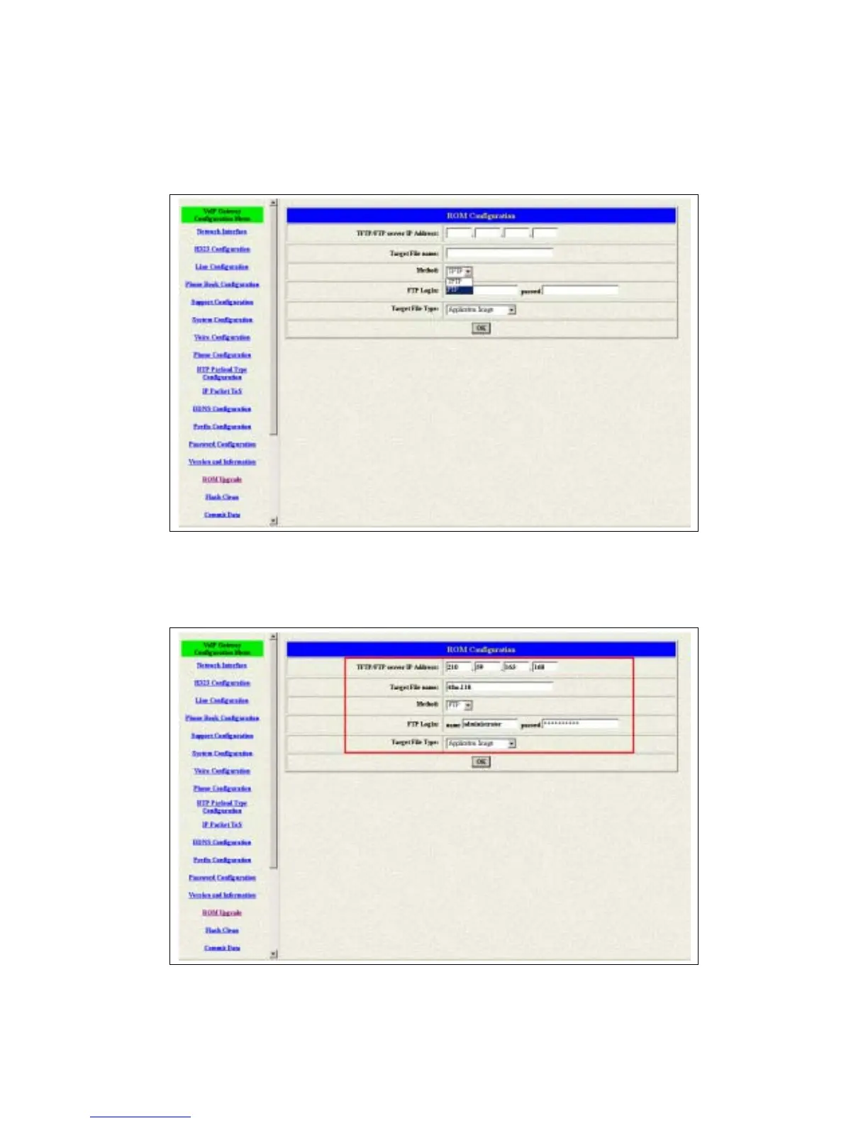 1 Pick up the “Rom Upgrade” button to enter the upgrading web page and