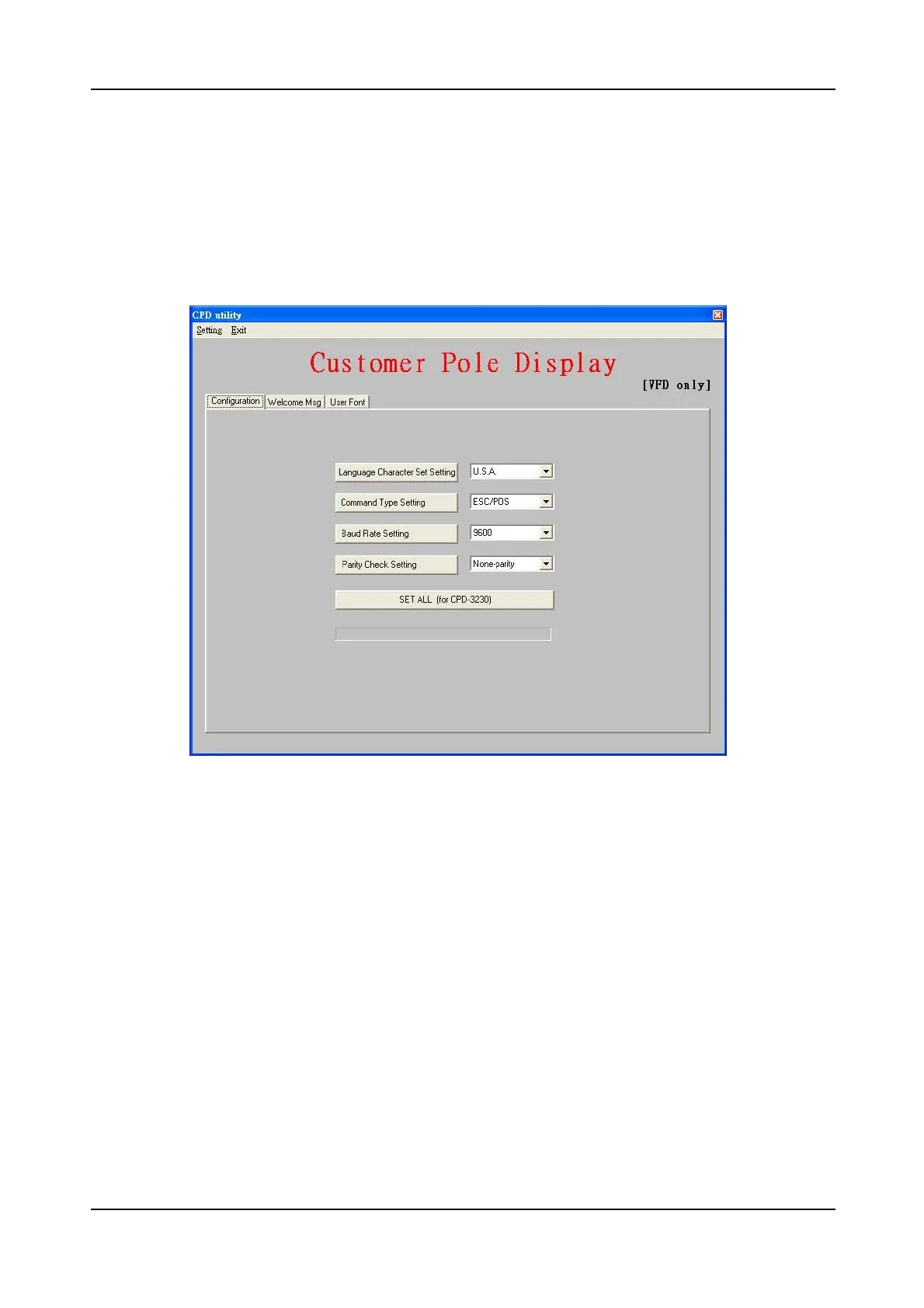 interface. After all items are set to desired condition, press SET button to send all
