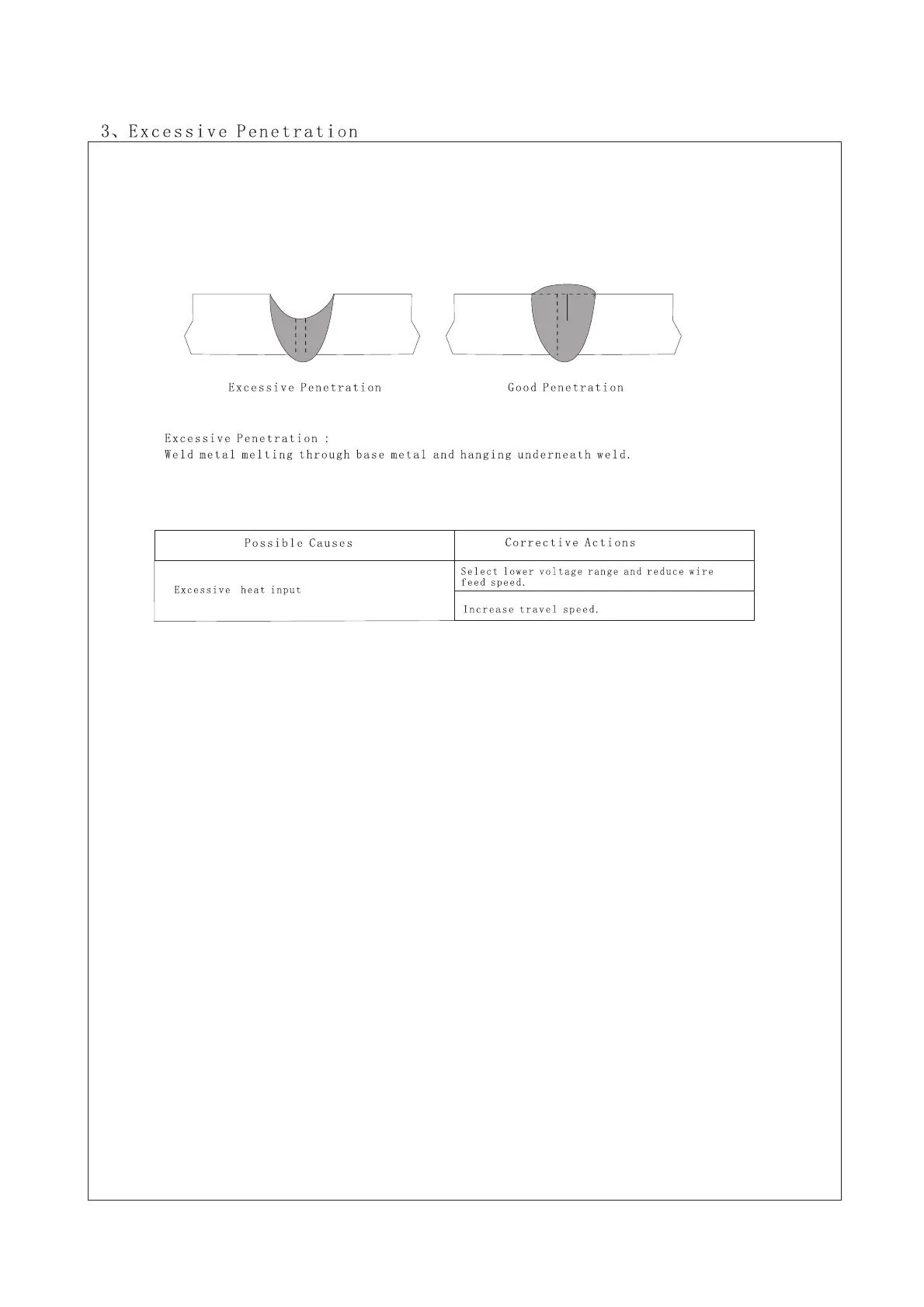 FY-TECH FY-4200/2E - Troubleshooting Excessive Penetration; Causes and Corrective Actions for Penetration