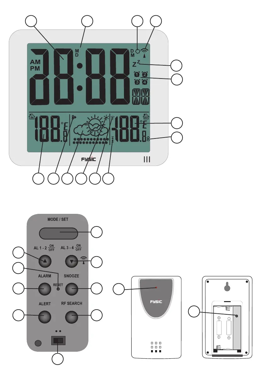 15. insteltoets “MODE/SET”