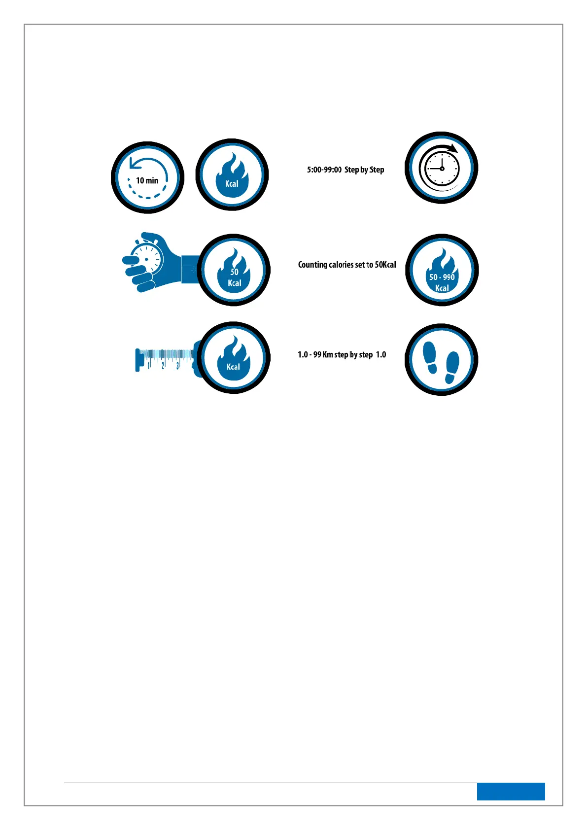 Counting calories set to 50Kcal,setting range 200-990Kcal,step by step 10.