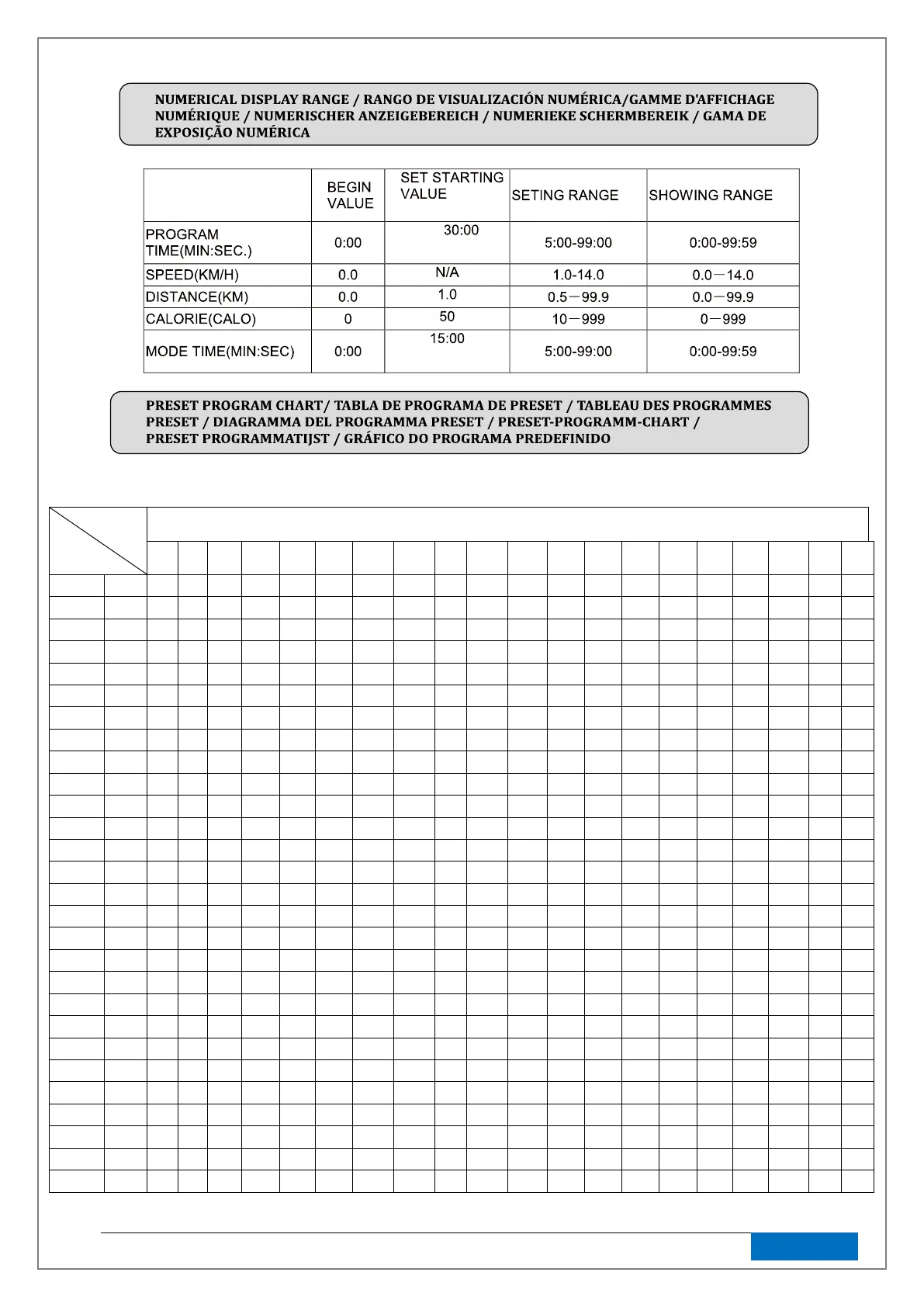 PRESET PROGRAMS: 40