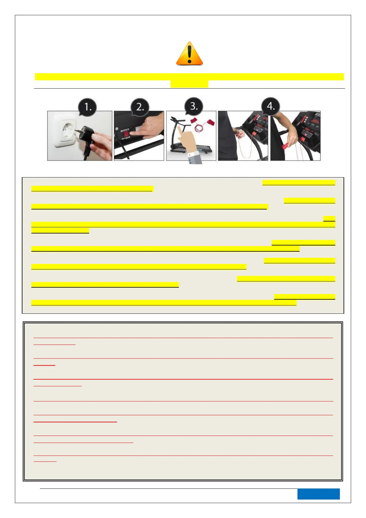 FRA- IL EST TRÈS IMPORTANT de réaliser une LUBRIFICATION appropriée du tapis de course à l'aide d'huile à base de silicone ou de téflon. CETTE