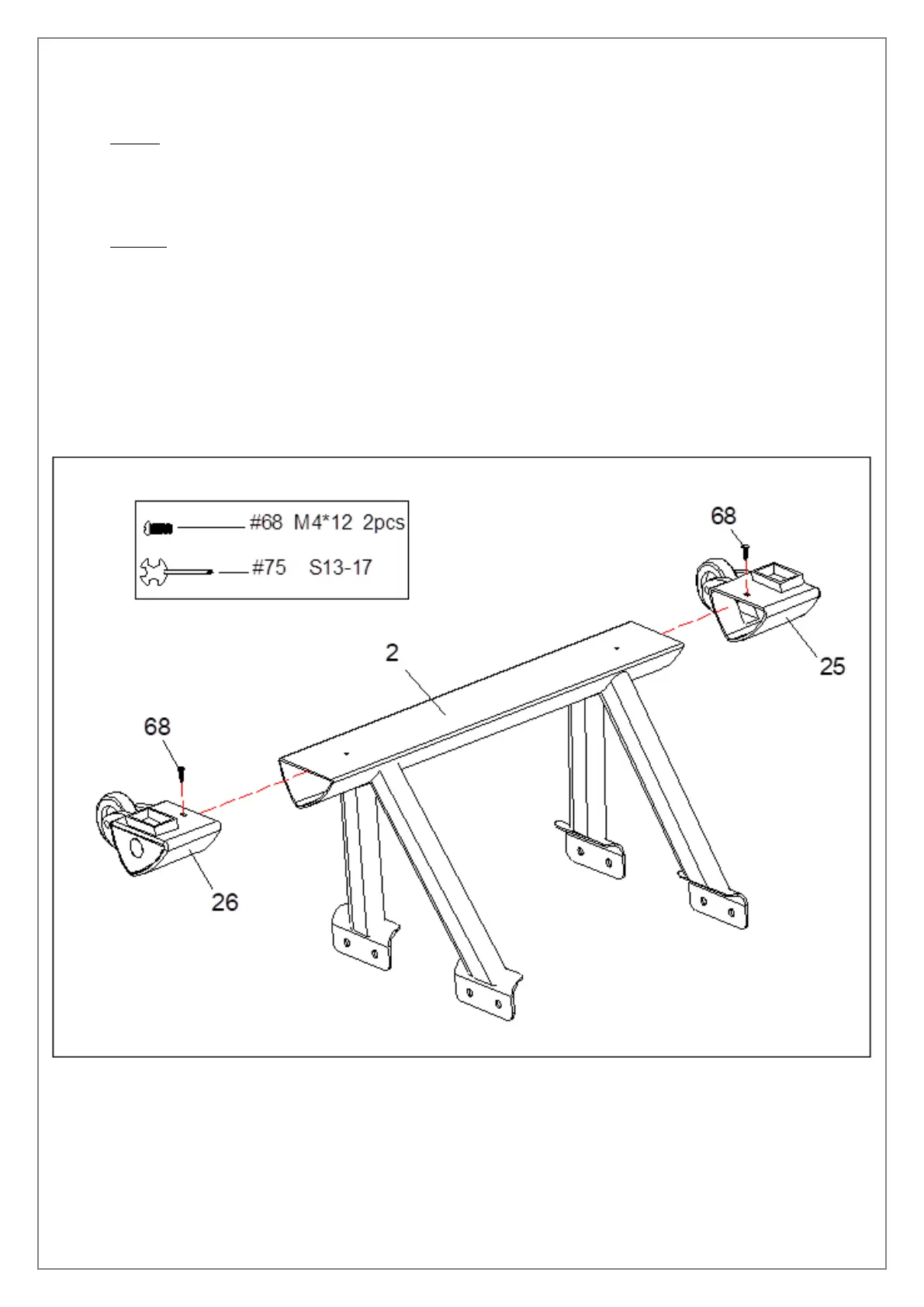 Attach L & R End Caps (No.25 & 26) to Front Stabilizer (No.2). Then tighten with 2 Cross Screws (No.68) using