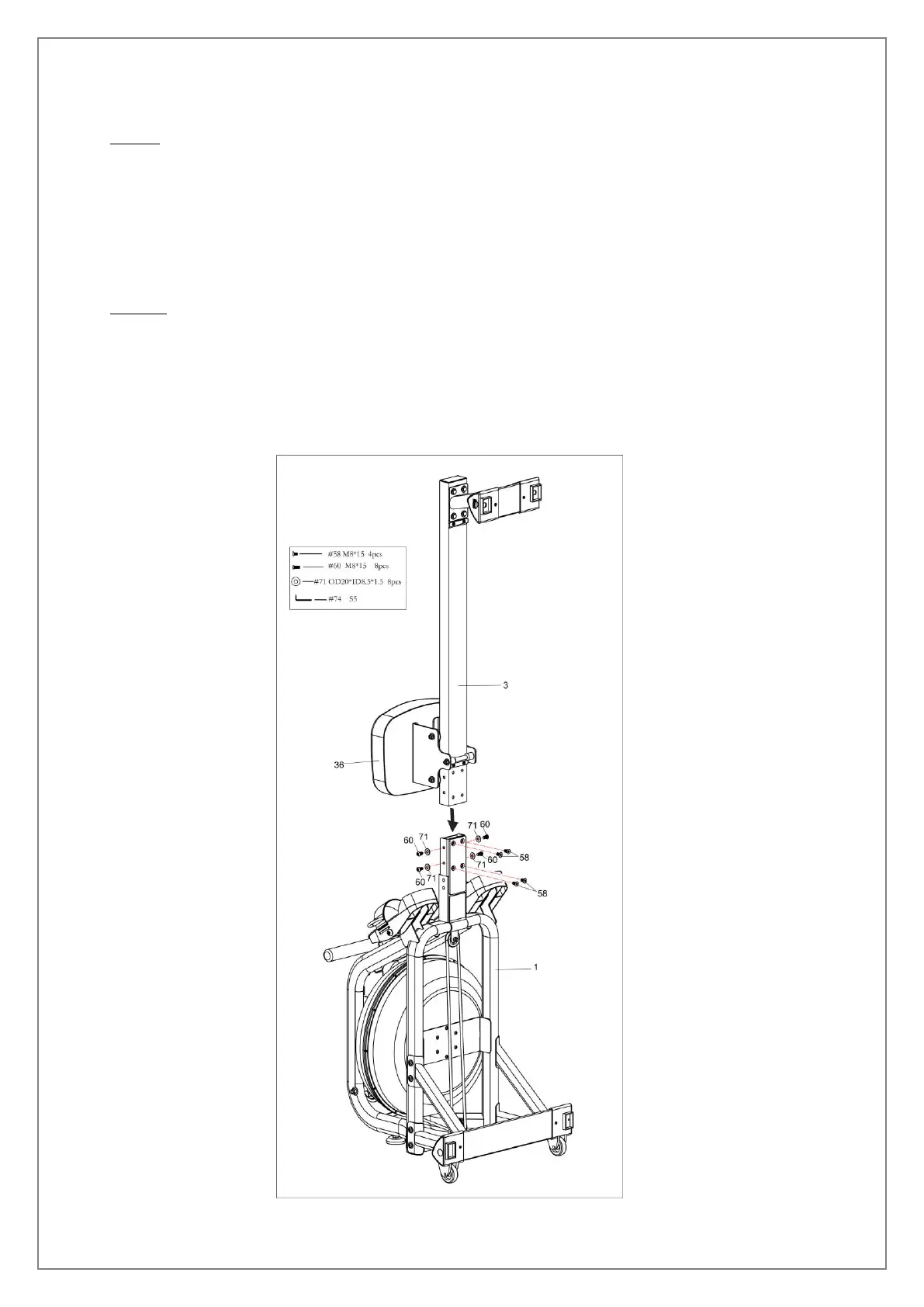 Fije el riel deslizante (No. 3) al marco principal (No. 1) usando 4 arandelas (No. 71), 4 tornillos (No. 60) y 4 tornillos