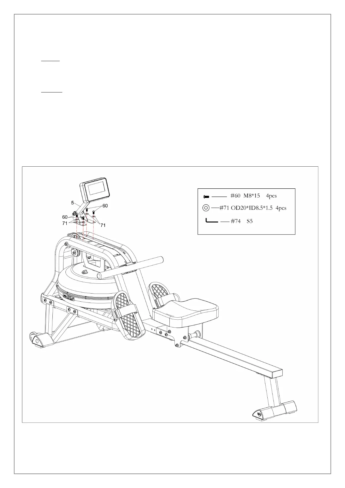 Attach the Support for computer (No.5) to Main Frame, tighten with 4 Washers (No.71) and 4 Screws (No.60).