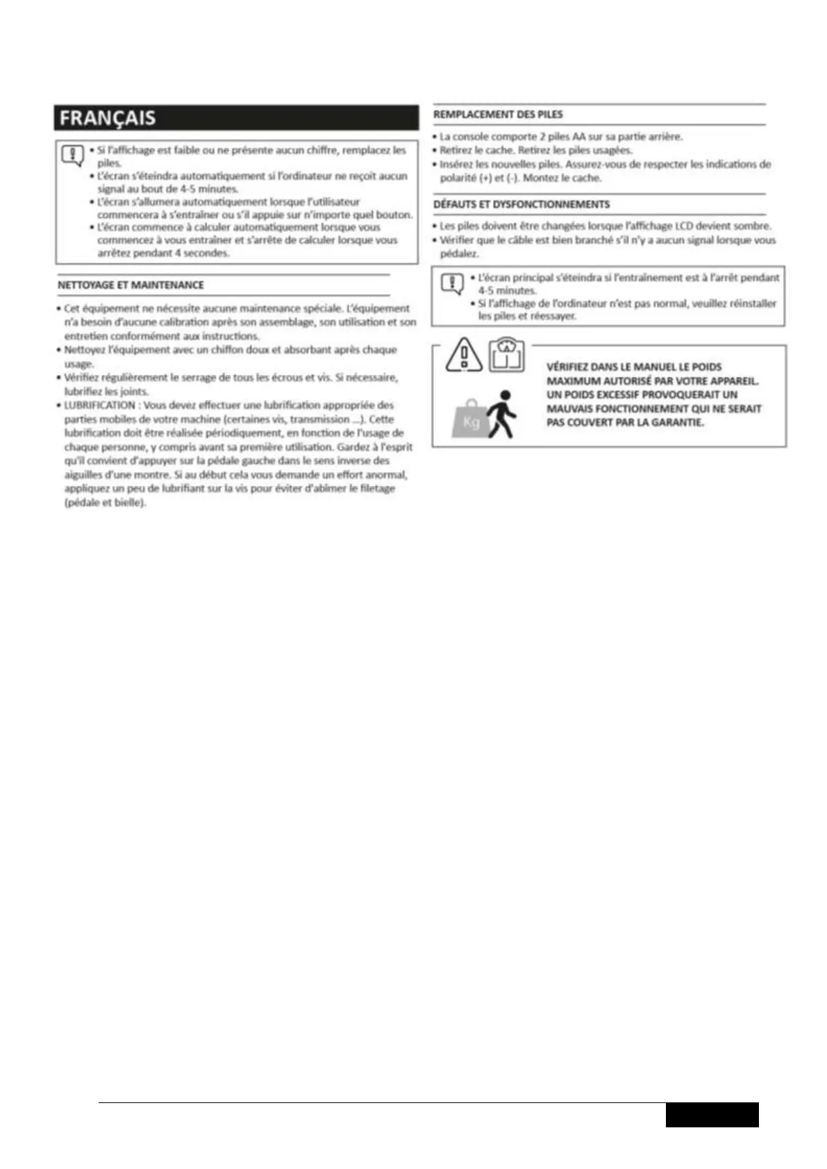 • CONSERVEZ CES CONSEILS D'ENTRETIEN POUR LES CONSULTER PLUS TARD.
