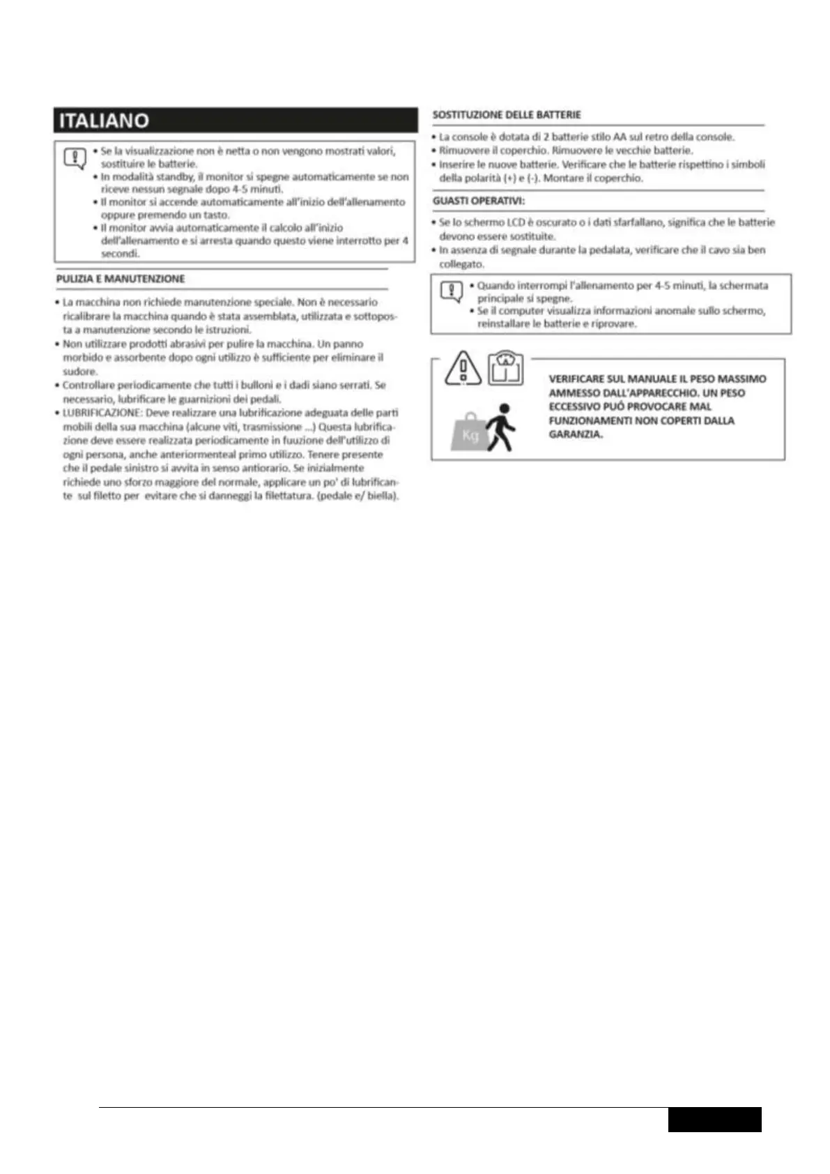 • VITI E CAVI DI COLLEGAMENTO: Ispezionare e serrare tutte le viti regolarmente, dal momento che, a causa delle vibrazioni i