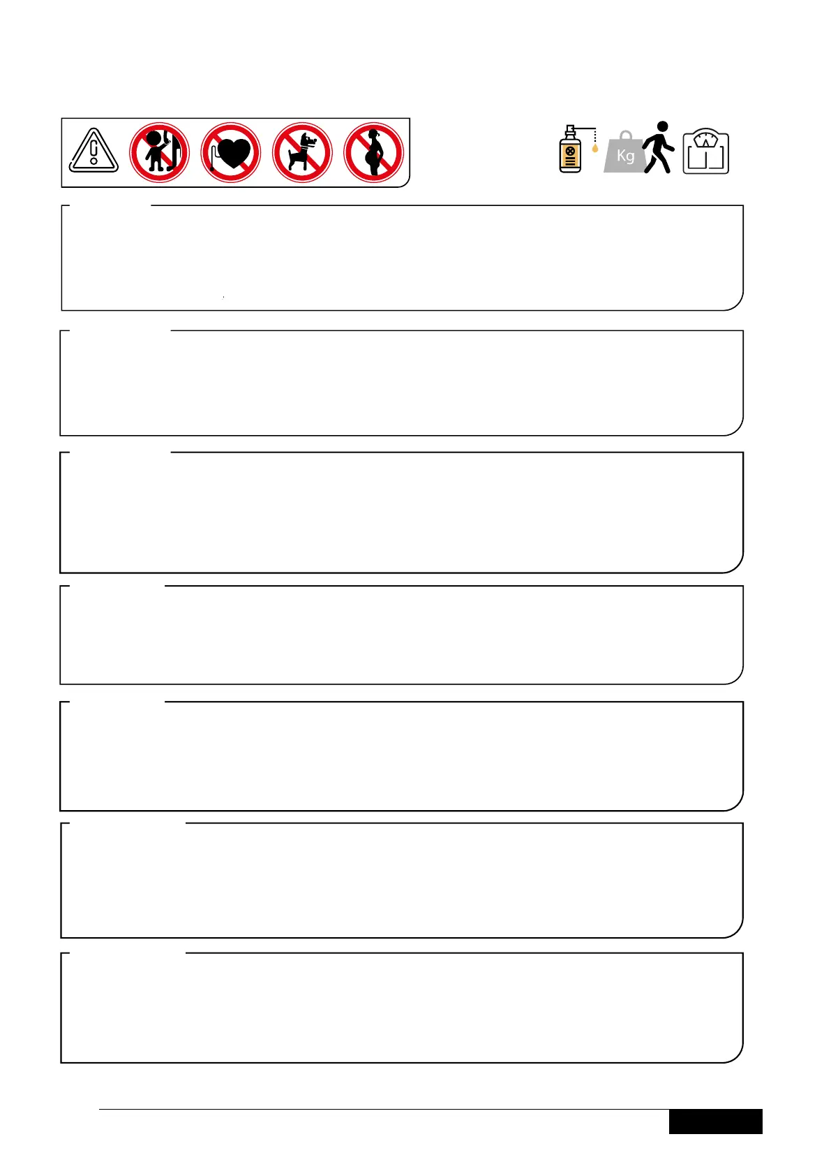 CHECK INTHE MANUAL THEMAXIMUMWEIGHT YOUR EQUIPMENT CAN SUPPORT. AN EXCESSIVEWEIGHT COULD LEAD TO A MALFUNCTION INTHE