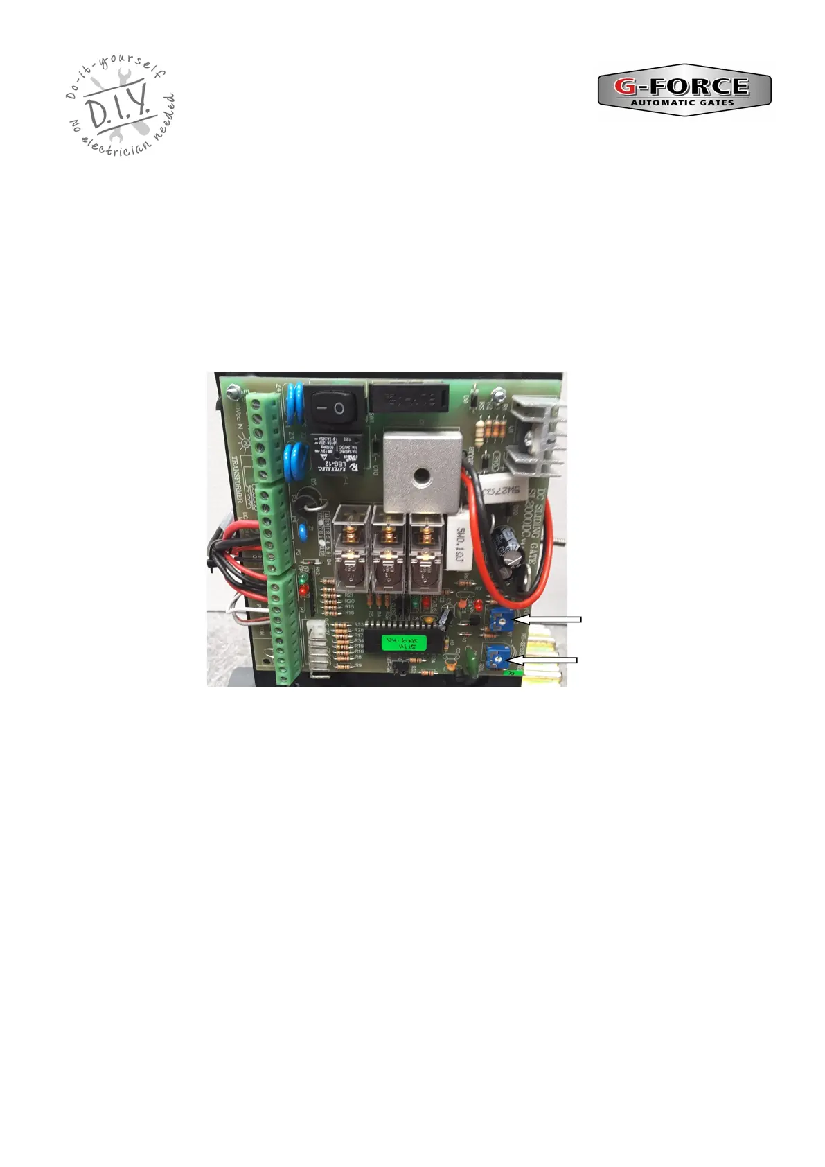 G-Force SL Series - SL 2000 Circuit Board Trim Pot Locations and Adjustments; Adjusting the Trim Pots
