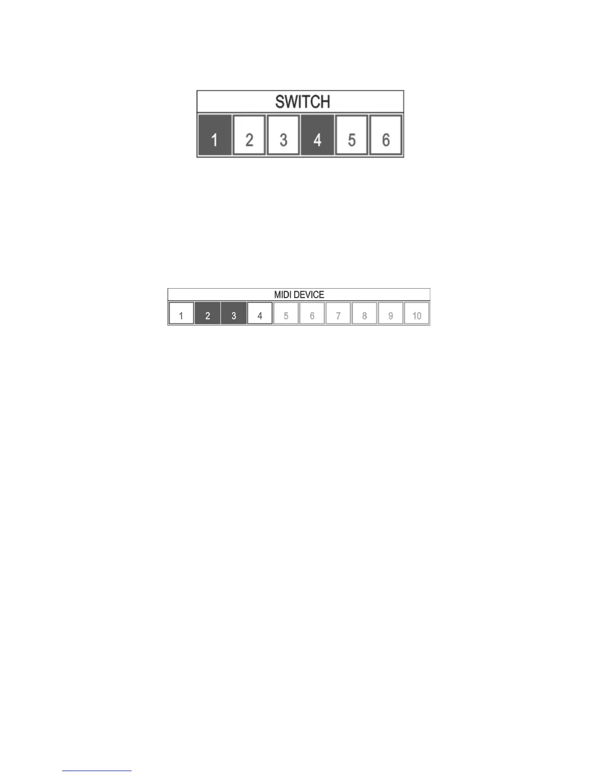 – Empty field with gray color (“5”, “6”, “7”, “8”, “9”, “10”) indicates that there is no defined MIDI