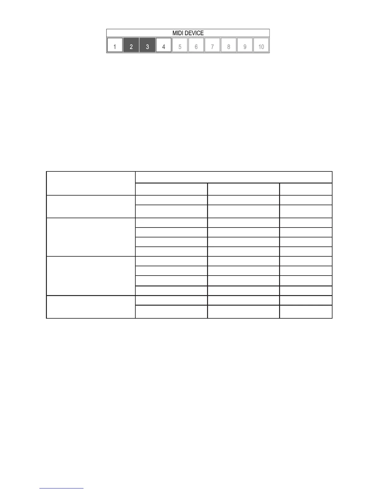 – Fields “5”, “6”, “7”, “8”, “9”, “10” indicate there are no defined MIDI devices