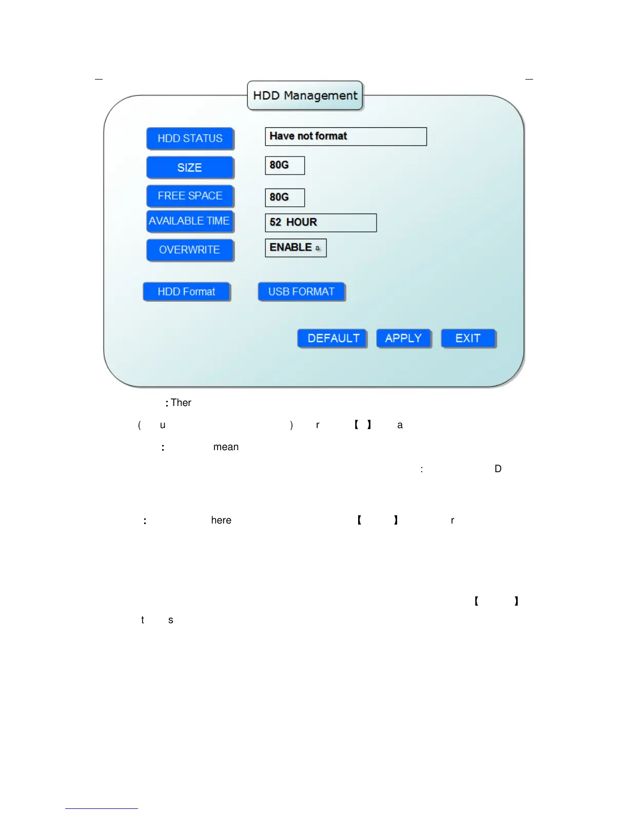 There are three status available, normal, un-format, No HDD. If HDD can not run