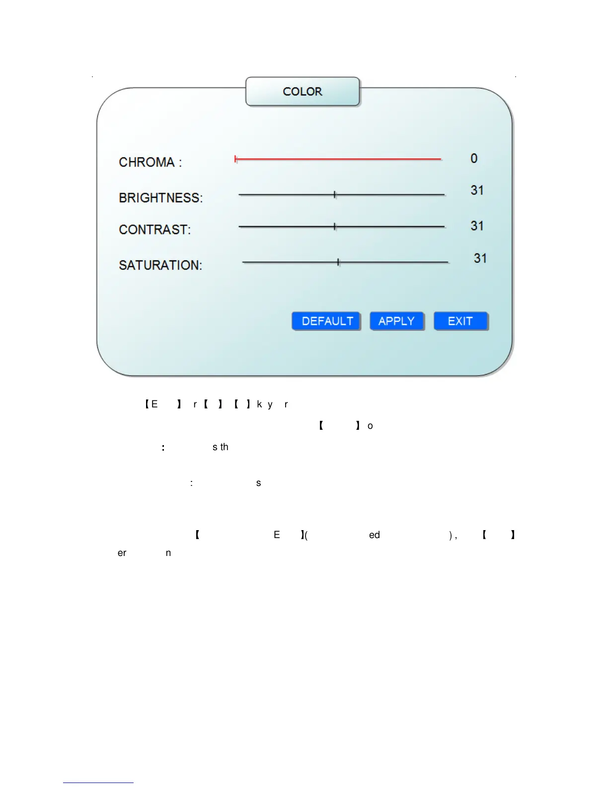 chroma,brightness, contrast and saturation, press
