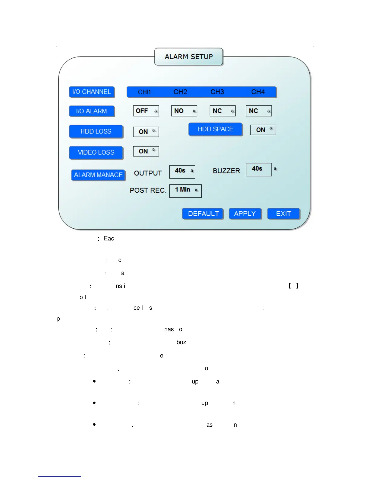 Each channel corresponds an I/O status, that is, when an alarm triggered, it will